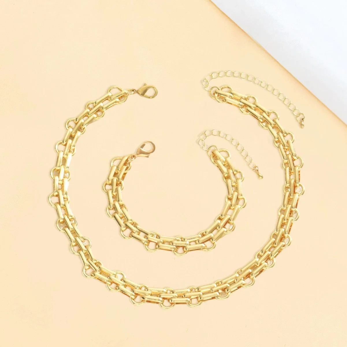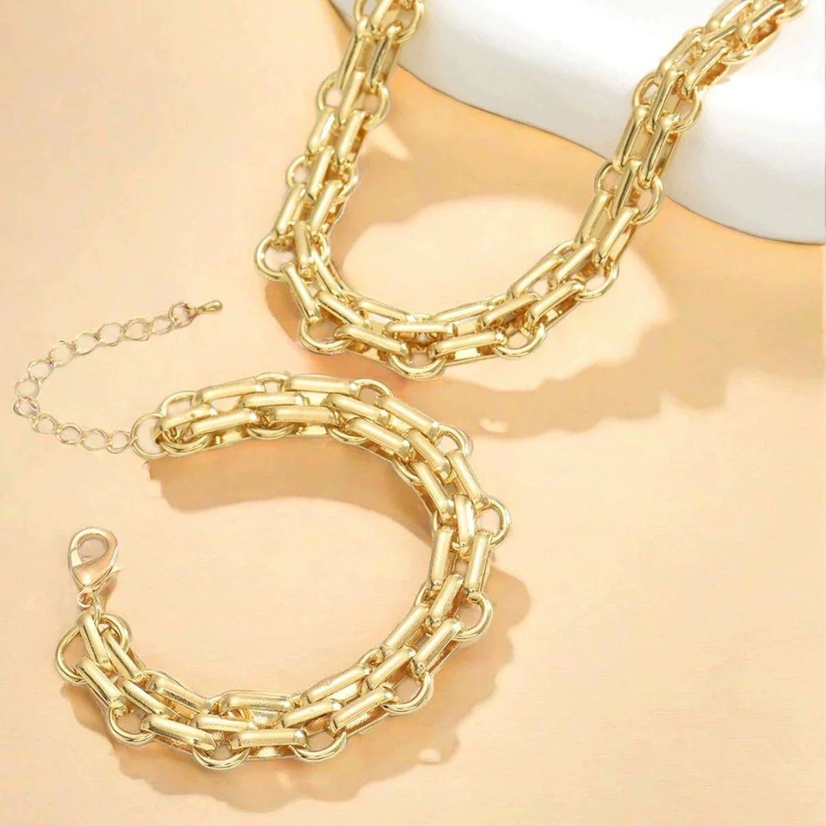2 Pcs/Set Collier à chaîne épaisse de couleur or exagérée Bracelet pour femme Punk HipHop Link Cuban Chain Statement Necklace Bracelet Set