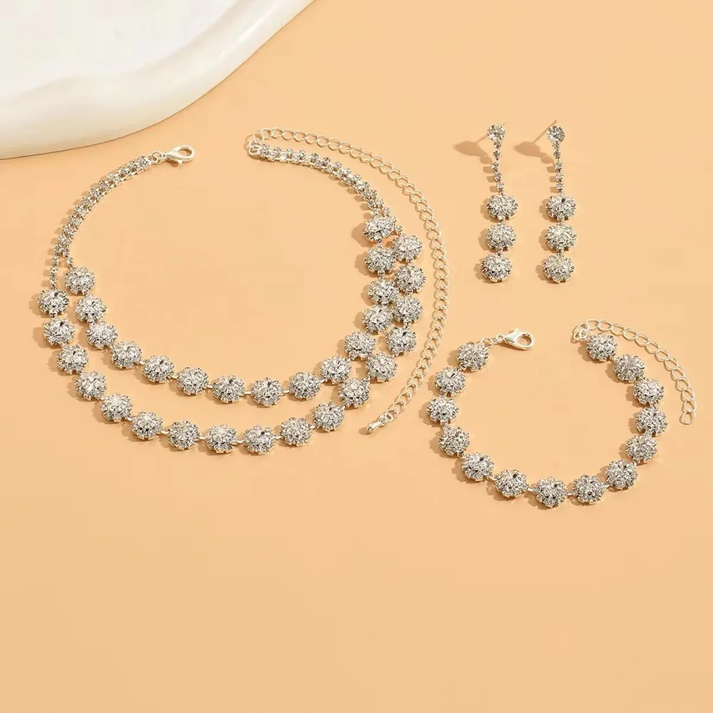 À la mode strass mariée accessoires de mariage Double couche tournesol collier et boucle d'oreille Bracelet ensemble de bijoux pour les femmes