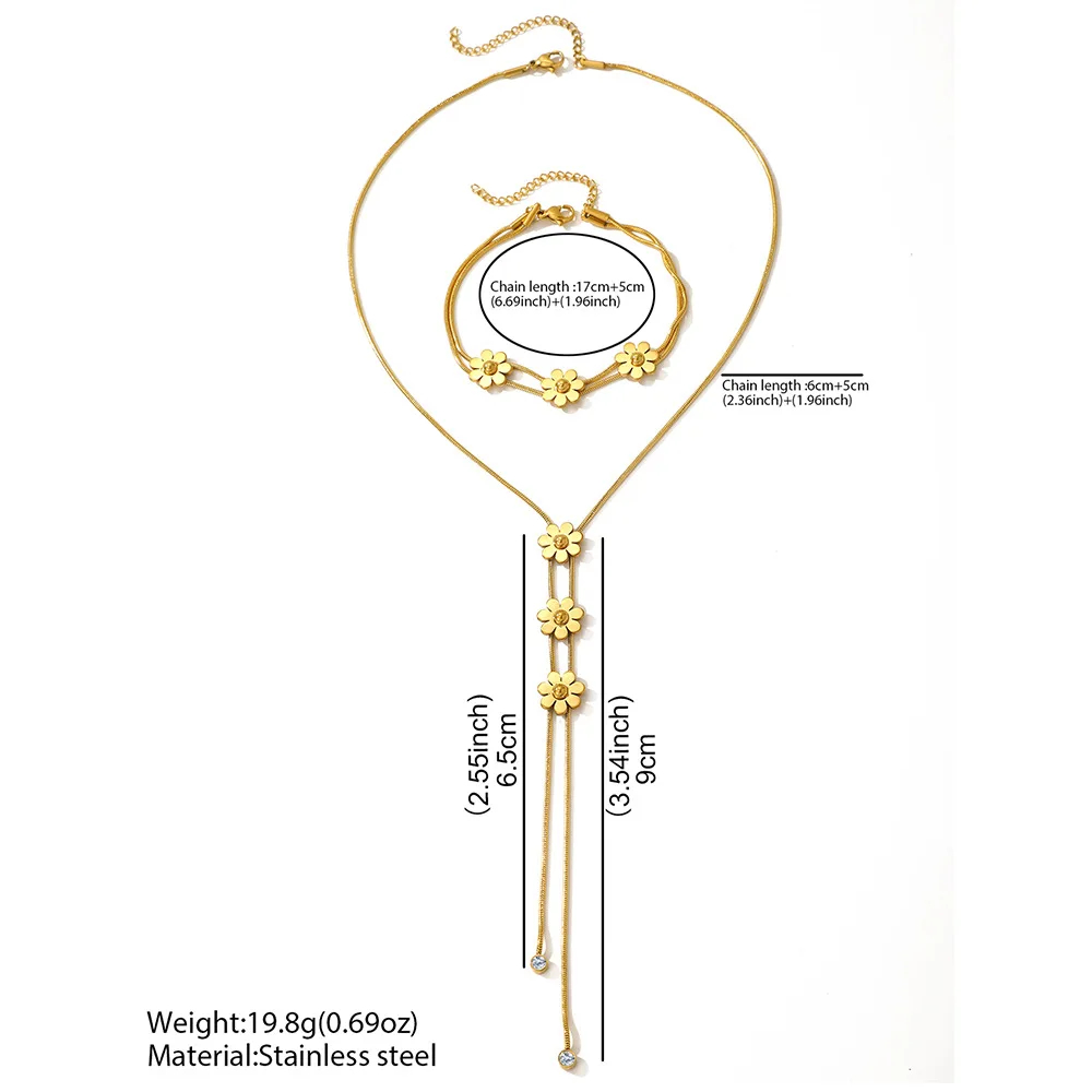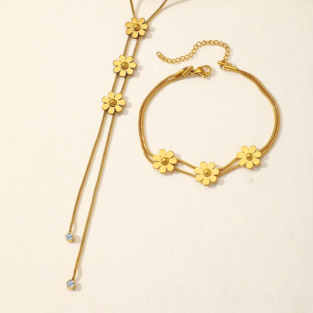 Accessoires étanches plaqué or Bijoux de mode en acier inoxydable Chaîne de serpent avec pompon Ensembles de colliers et bracelets de fleurs pour femmes