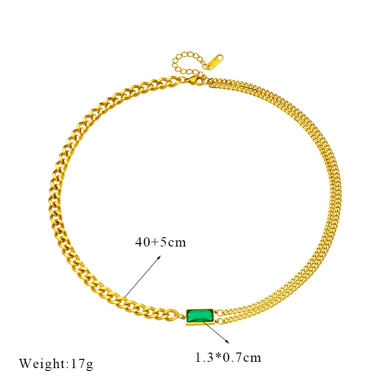Acier inoxydable Rectangle Émeraude Charme Collier Bracelet Boucles D'oreilles Cubique Zircone Étanche Plaqué Or Femmes Ensemble de Bijoux