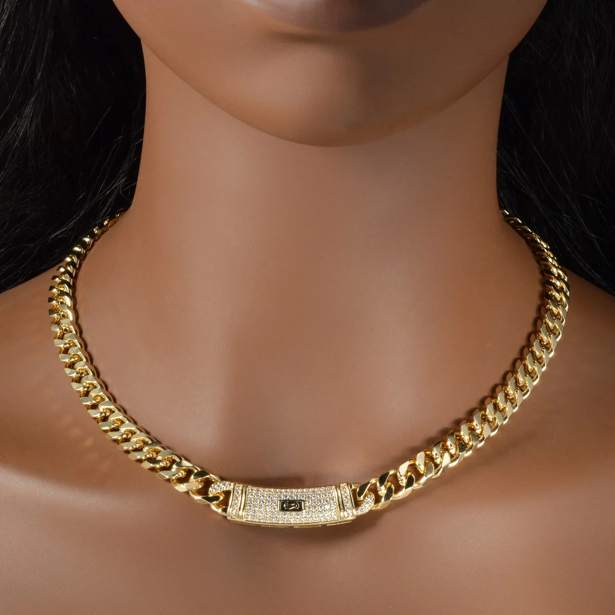 Best-seller 18K Or Européen Américain Cubain Chaîne Diamant Collier Bague Ensemble-pour Fête De Mariage Anniversaire-Sensation Haut De Gamme