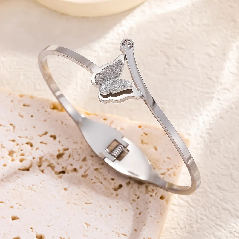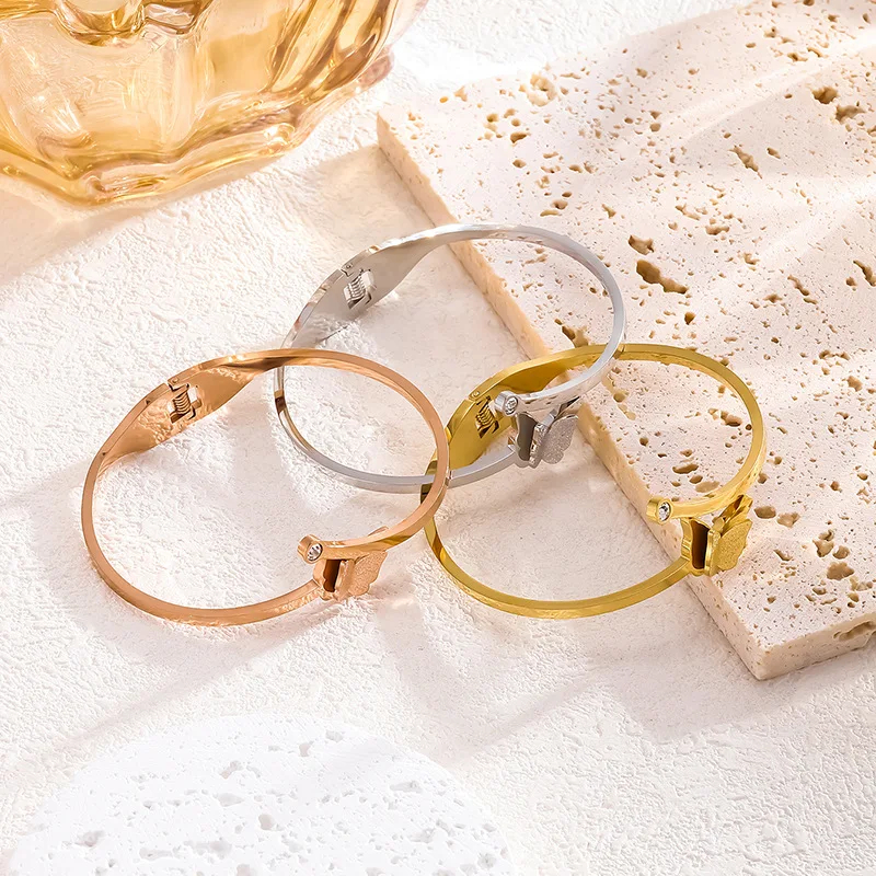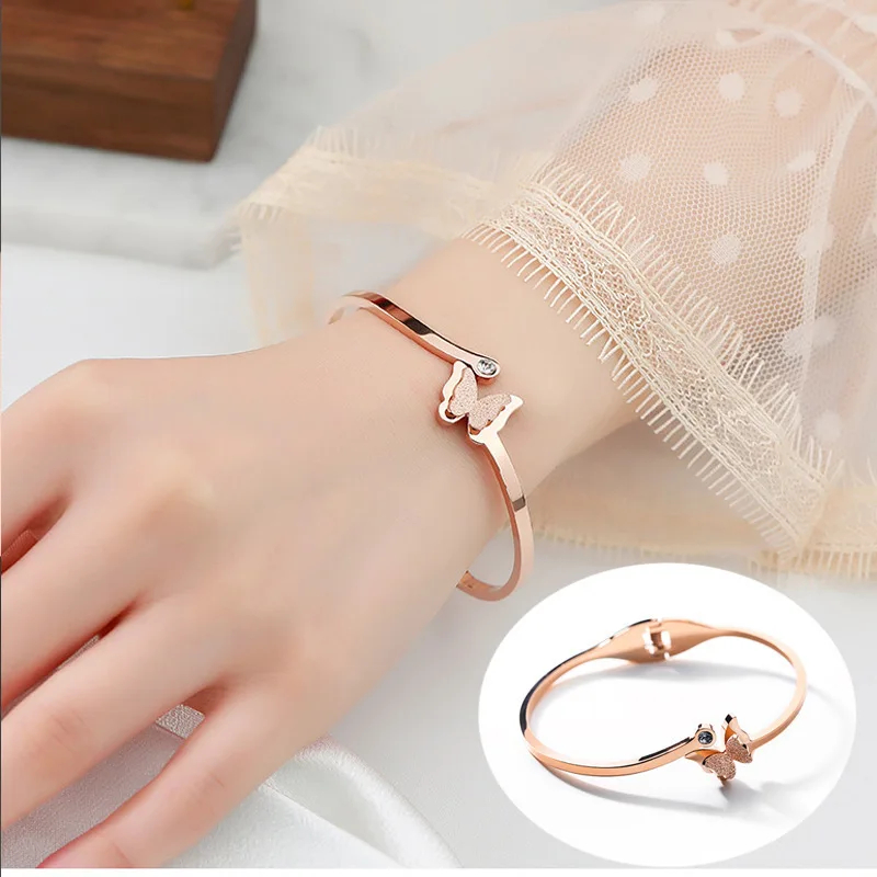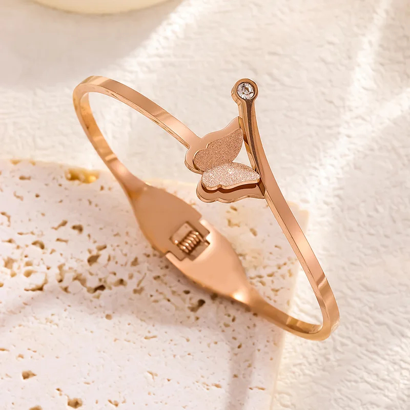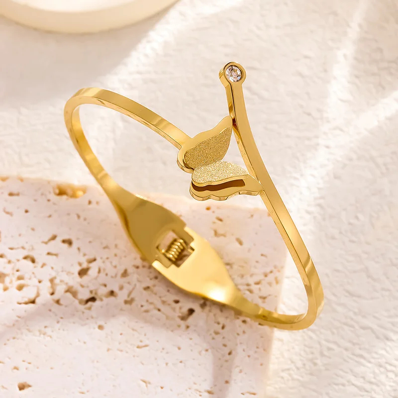 Bracelet papillon tendance serti de diamants, plaqué or 18 carats, finition mate, bracelet ouvert en acier inoxydable pour femmes