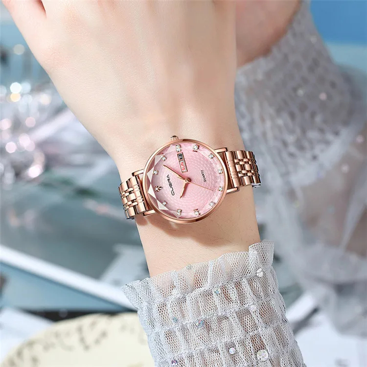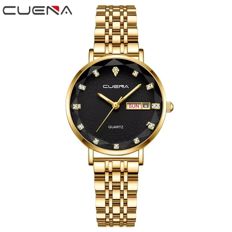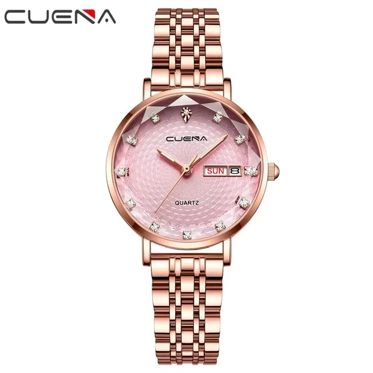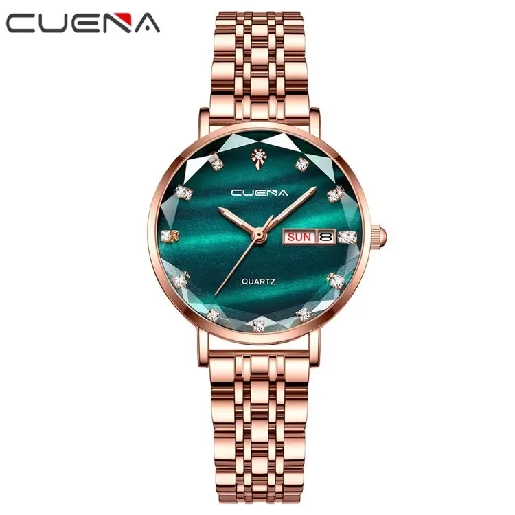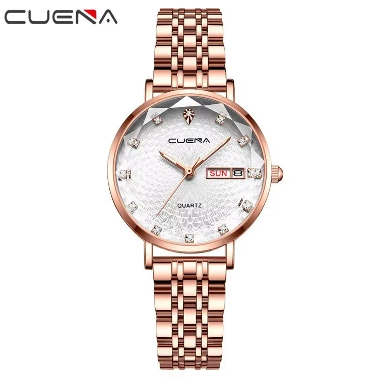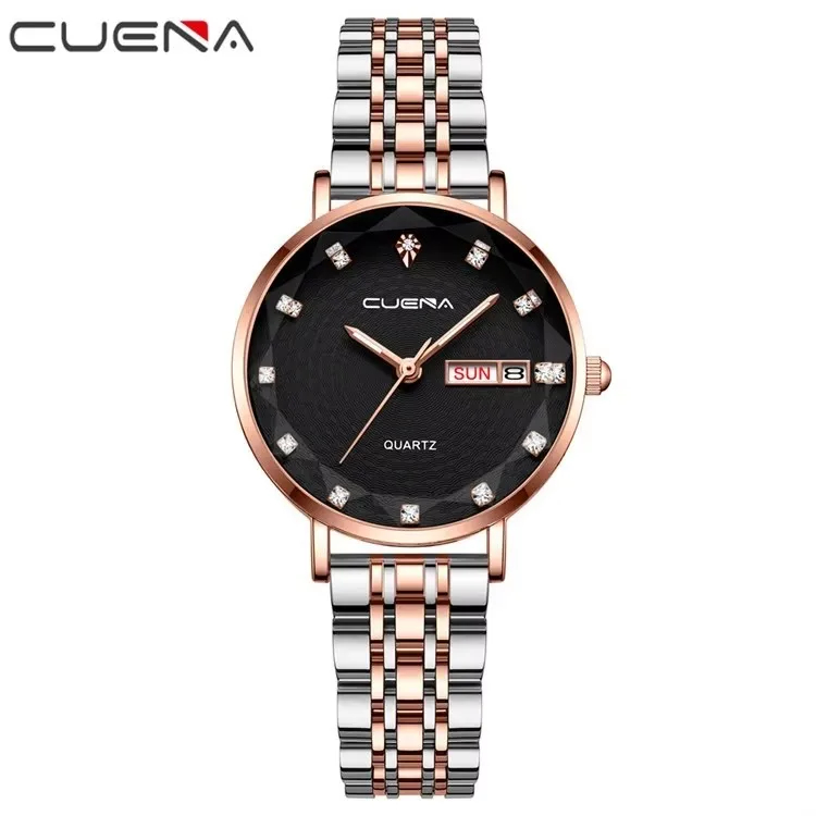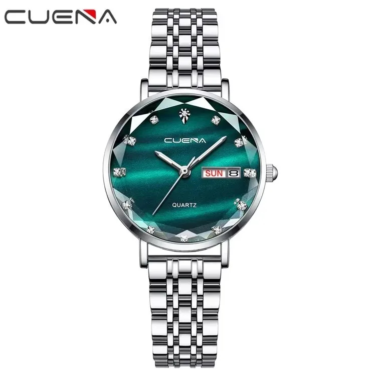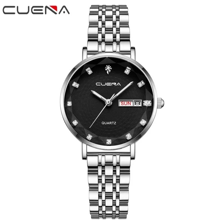 Cuena 6001 Loisirs Mode Vision Nocturne Fonction Diamants Conception Montre Femme Montres Pour Dames Bracelet En Acier Inoxydable Lumineux