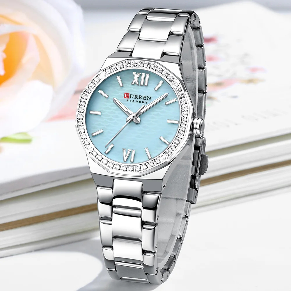 Curren 9103 Montre à quartz pour femme Montre-bracelet élégante et mince en acier inoxydable Montre originale étanche à aiguilles lumineuses pour femme