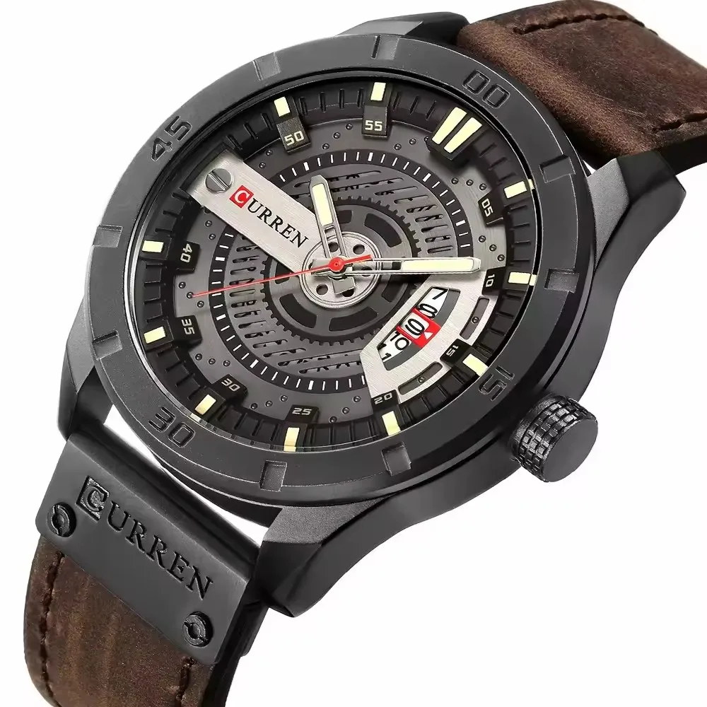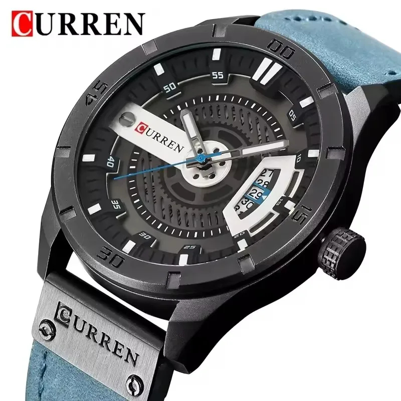 CURREN-Montre sport de luxe pour homme, montre décontractée, montre étanche en cuir, quartz, 8301