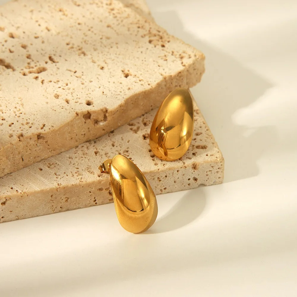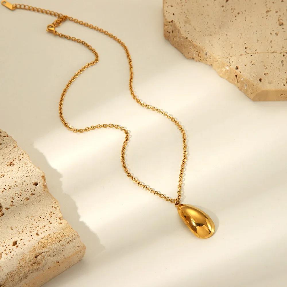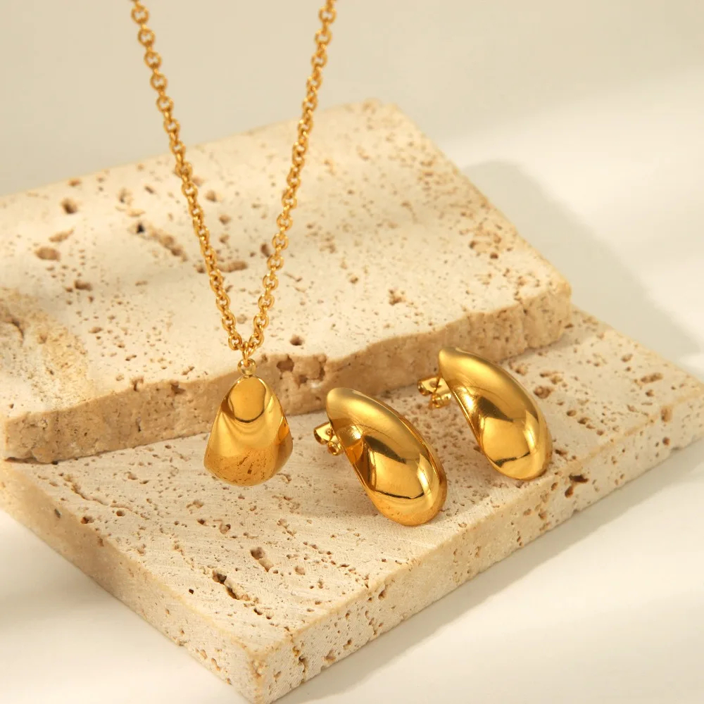Ensemble collier et boucles d'oreilles en forme de goutte d'eau en acier inoxydable plaqué or 18 carats pour femmes, vente en gros