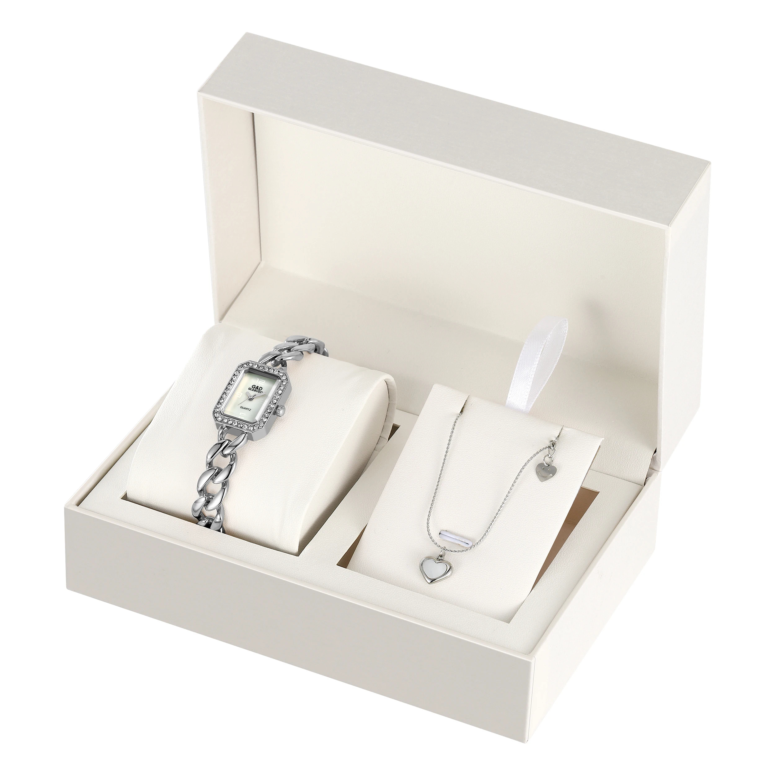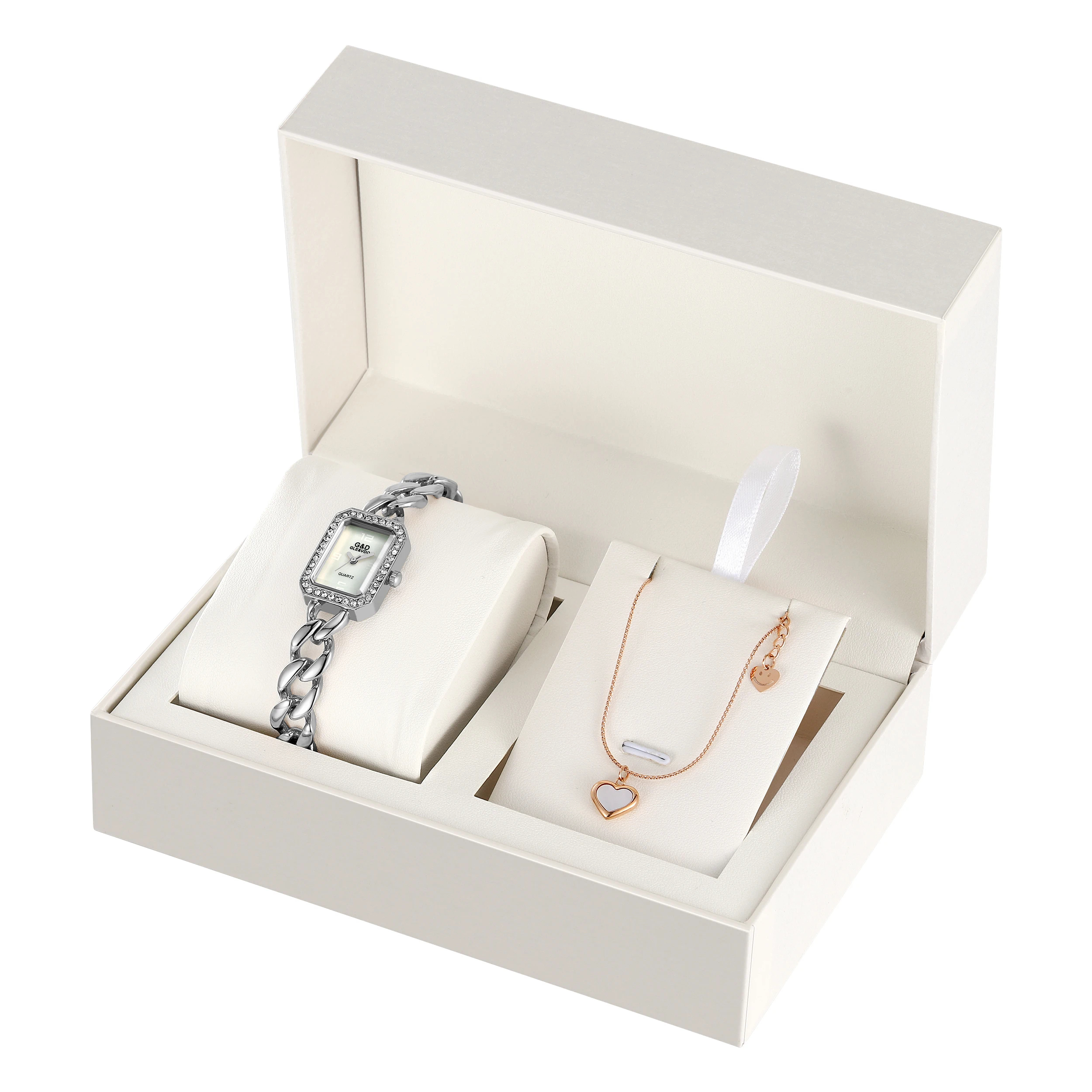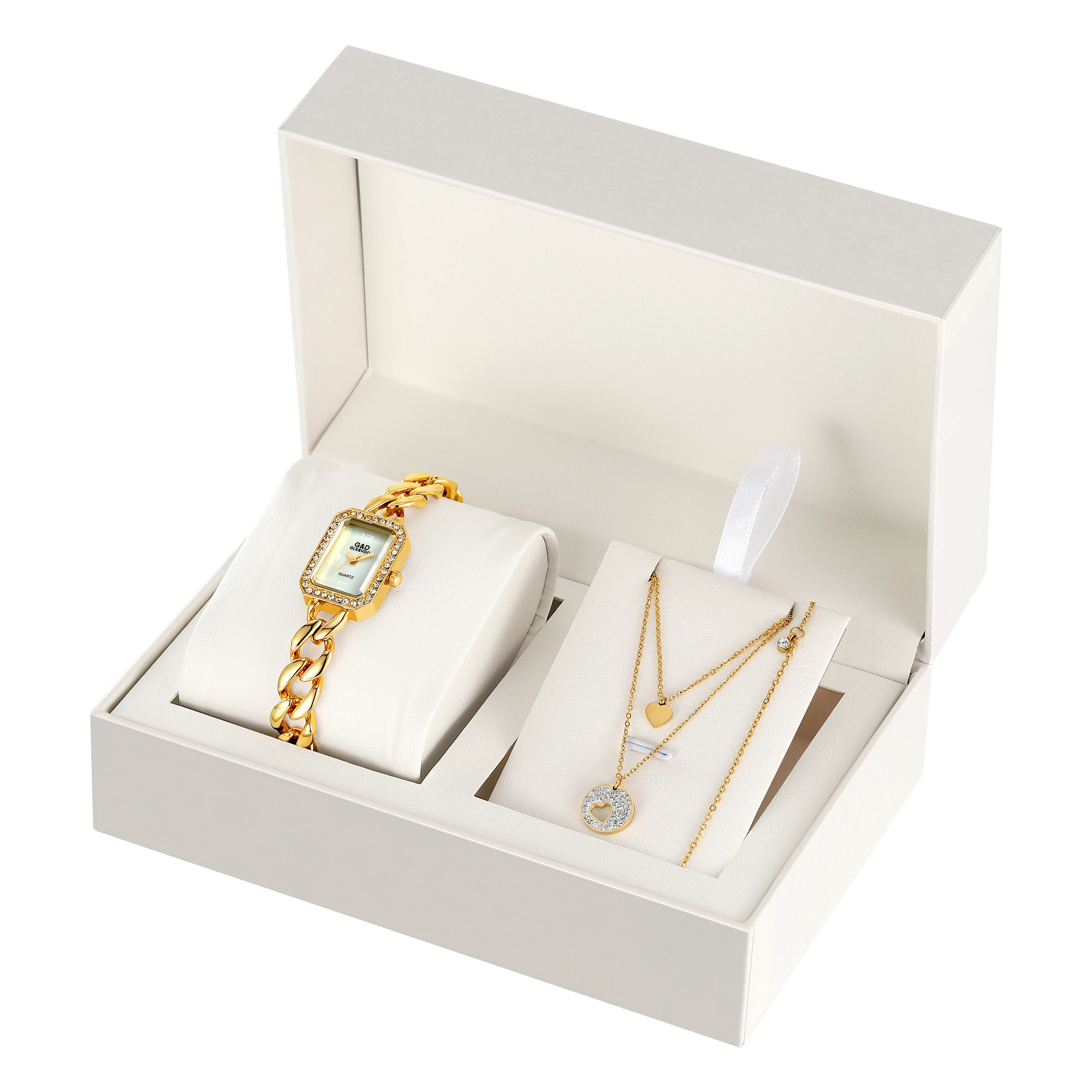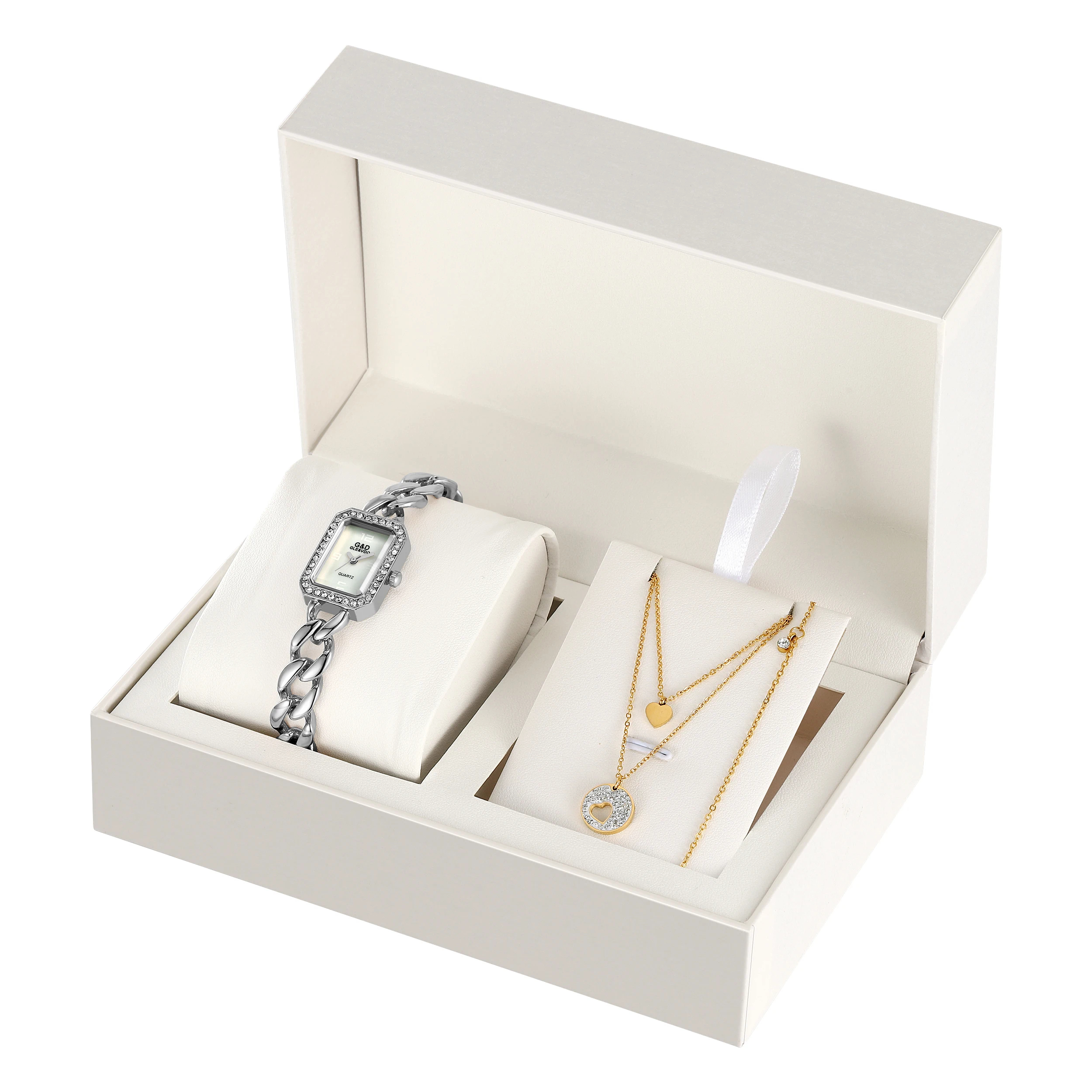 Ensemble Luxe Femme Mode Haute Qualité Montre Quartz Acier Inoxydable Collier Bracelet Bijoux pour Femme