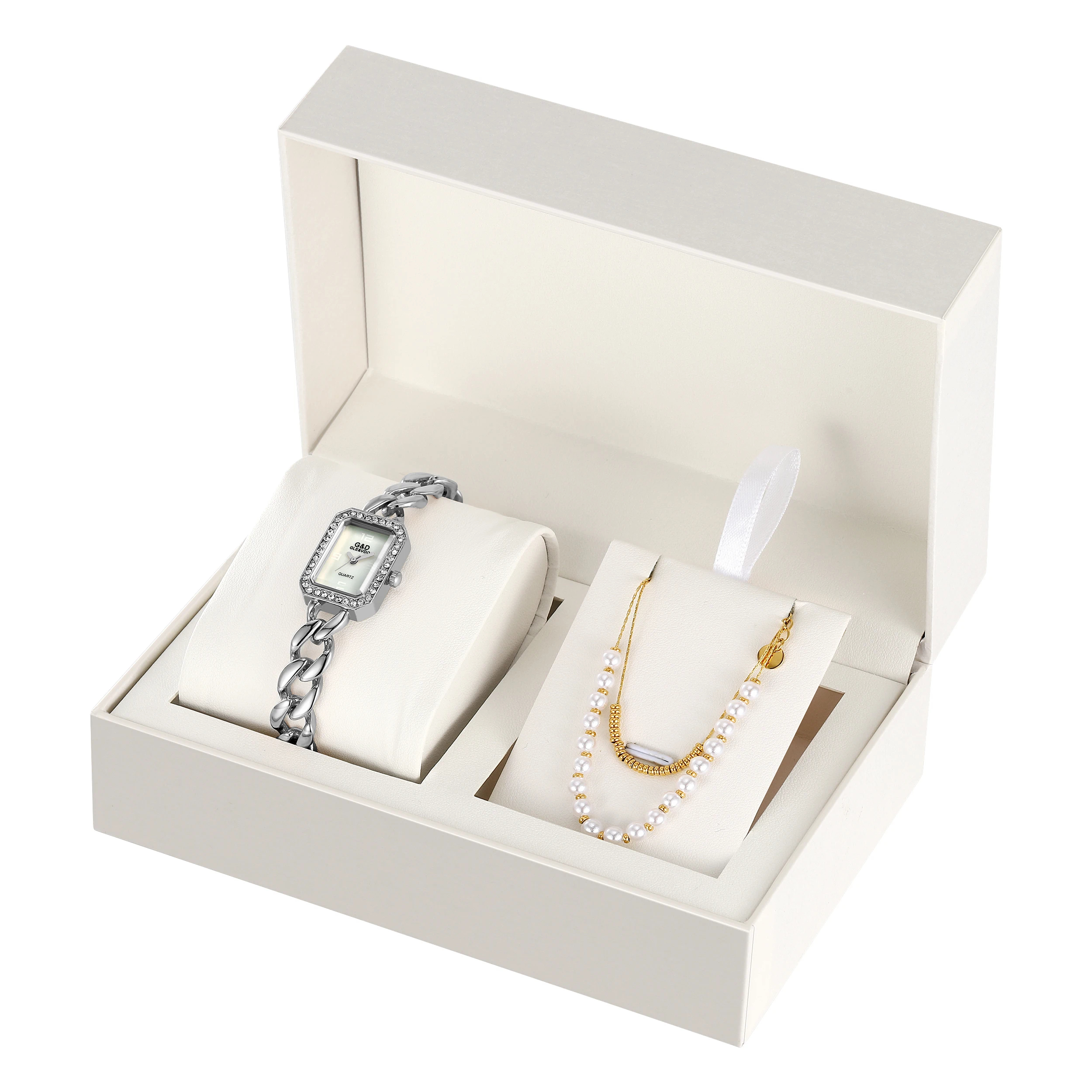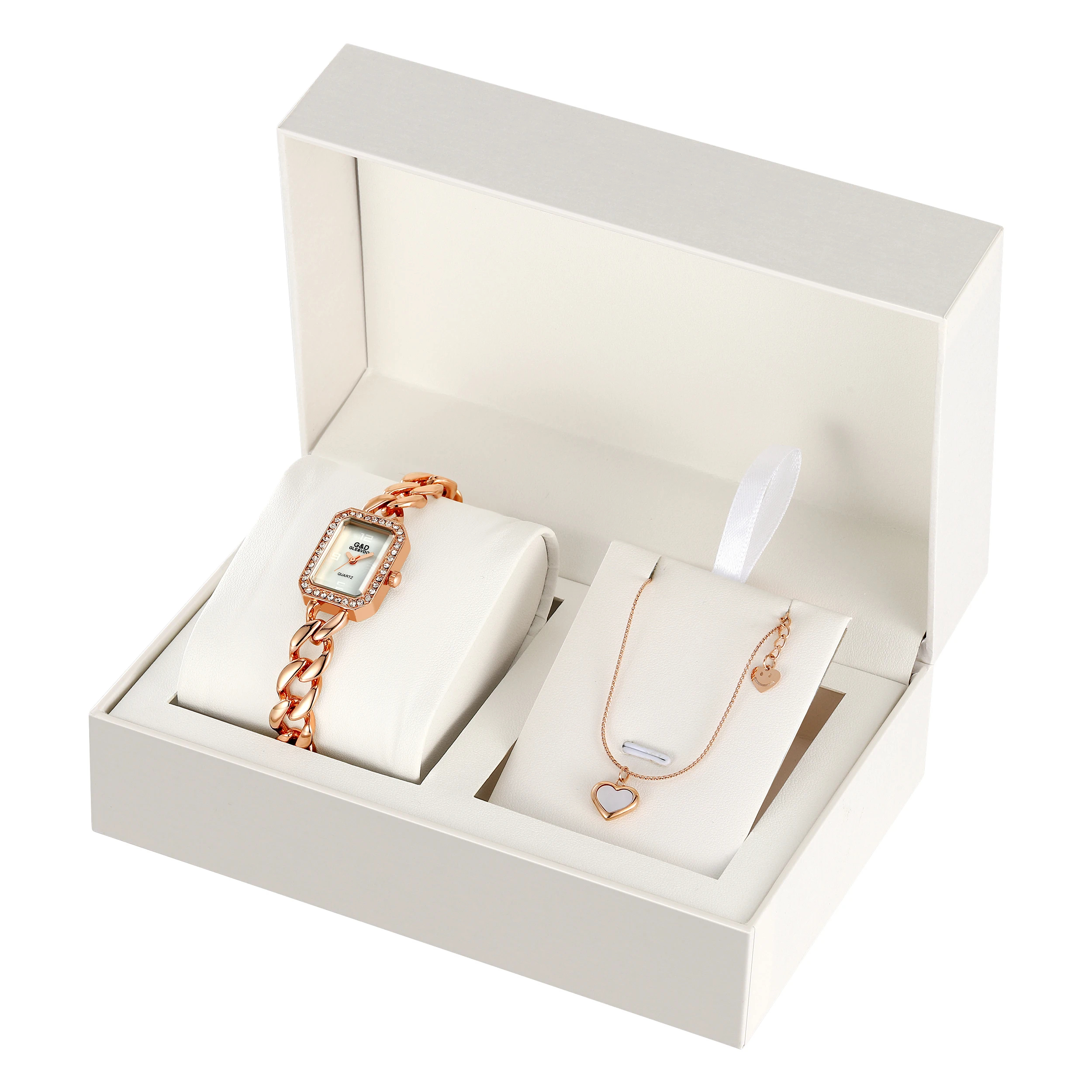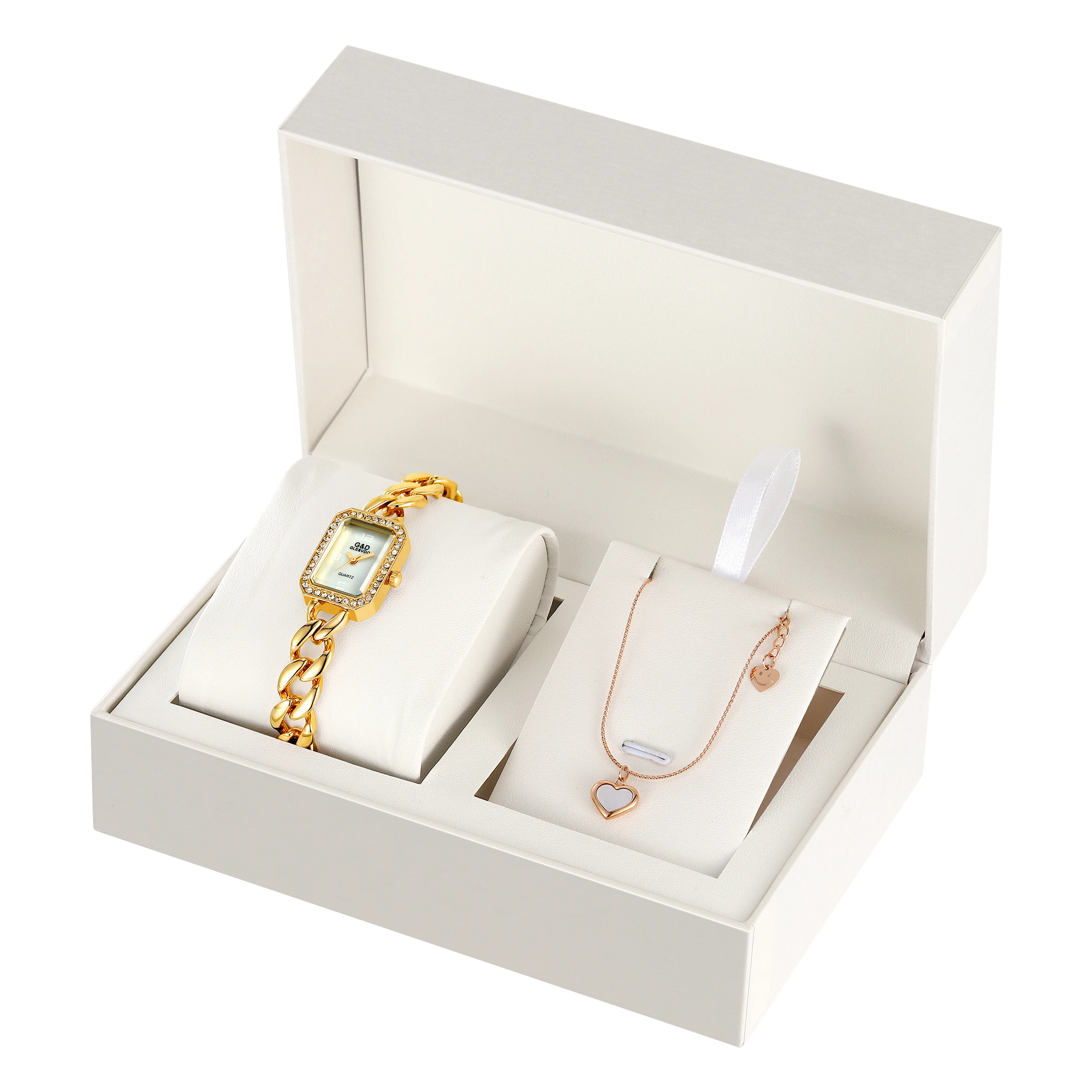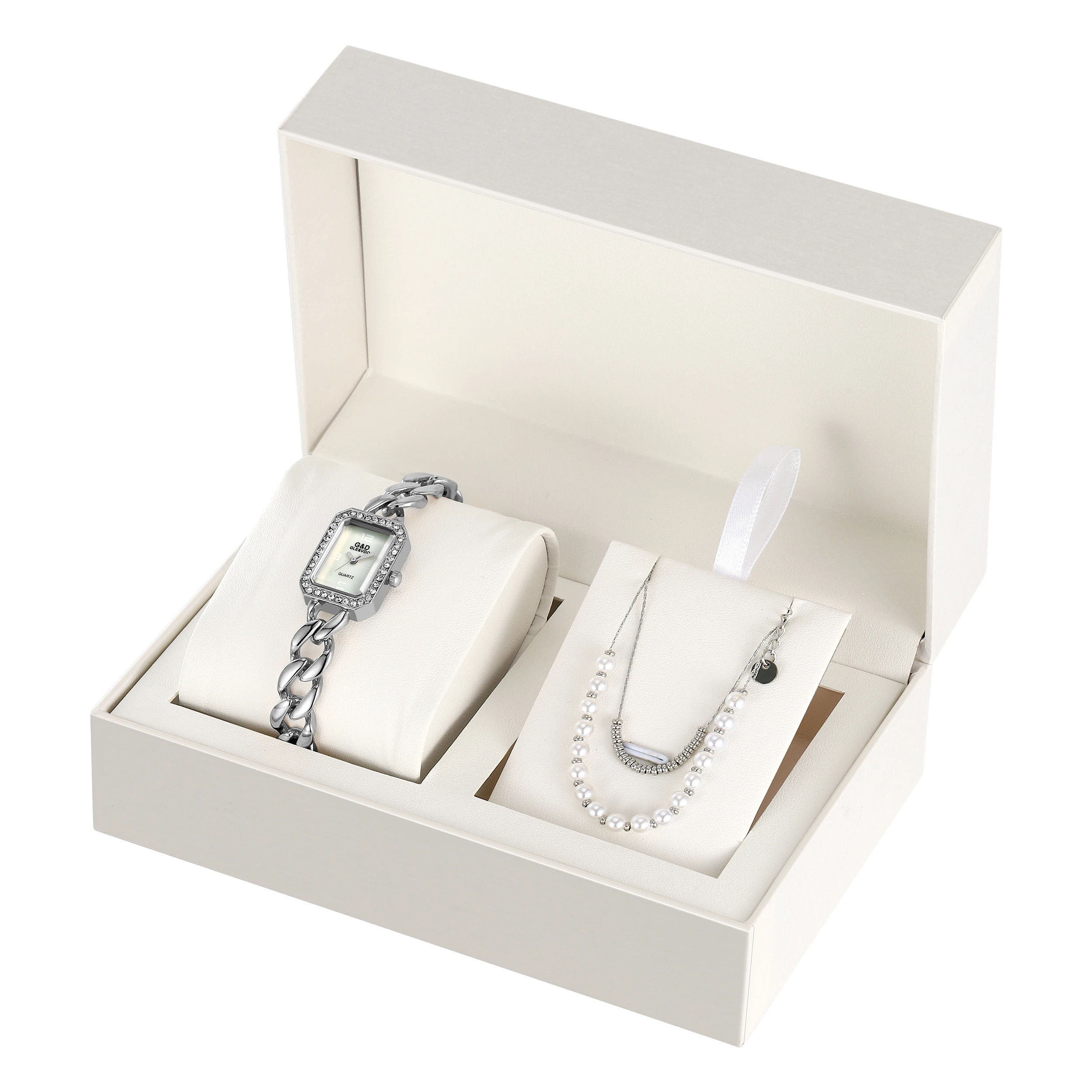 Ensemble Luxe Femme Mode Haute Qualité Montre Quartz Acier Inoxydable Collier Bracelet Bijoux pour Femme