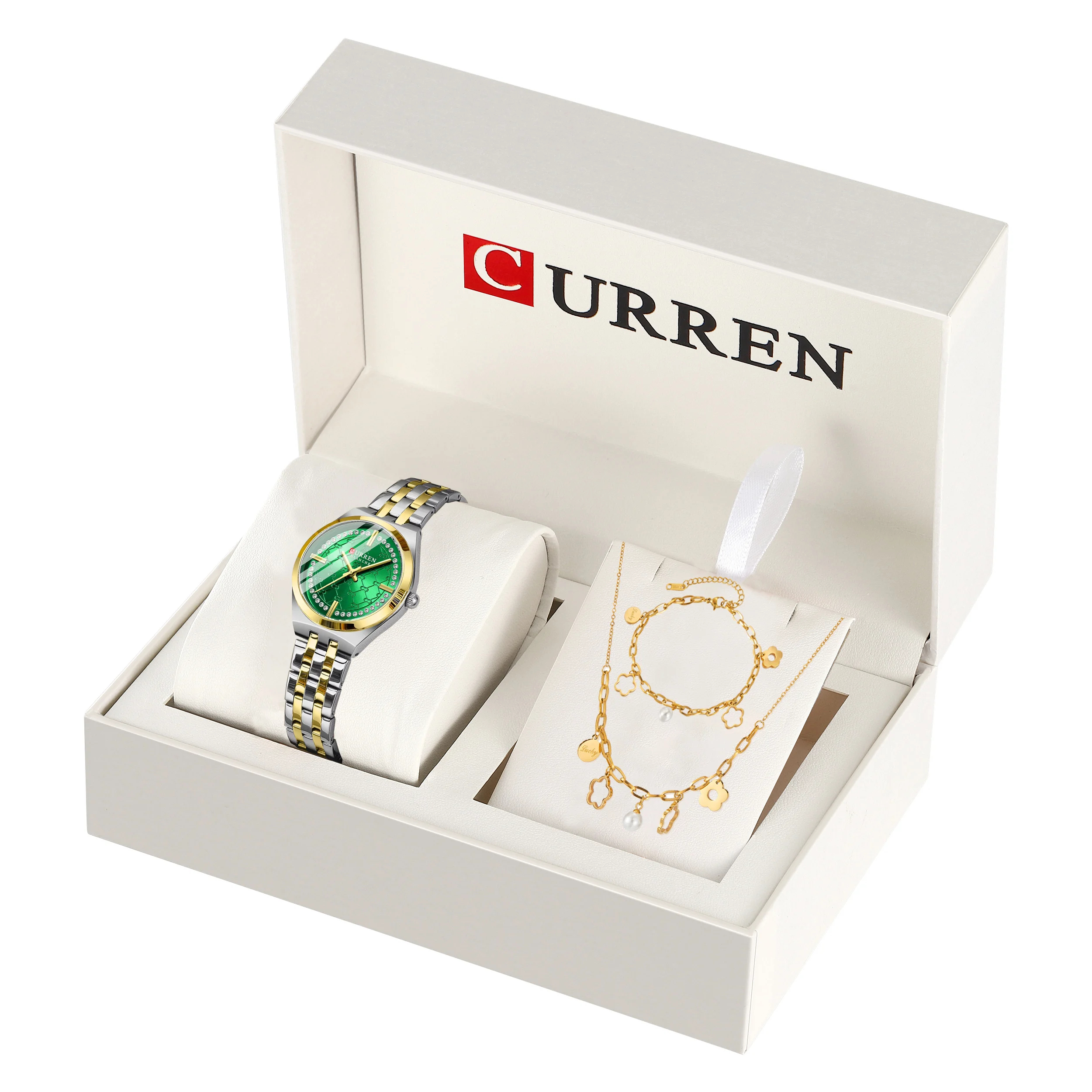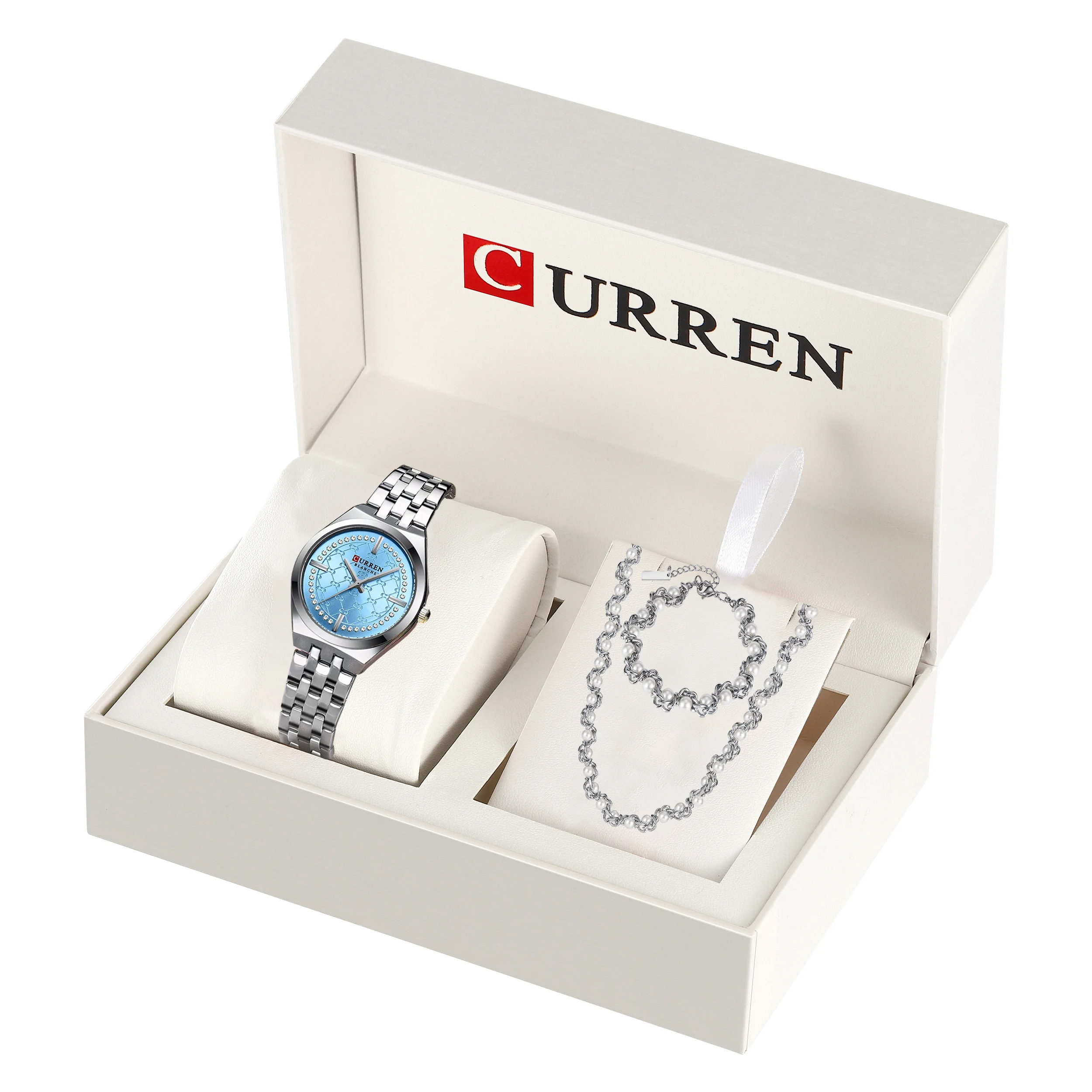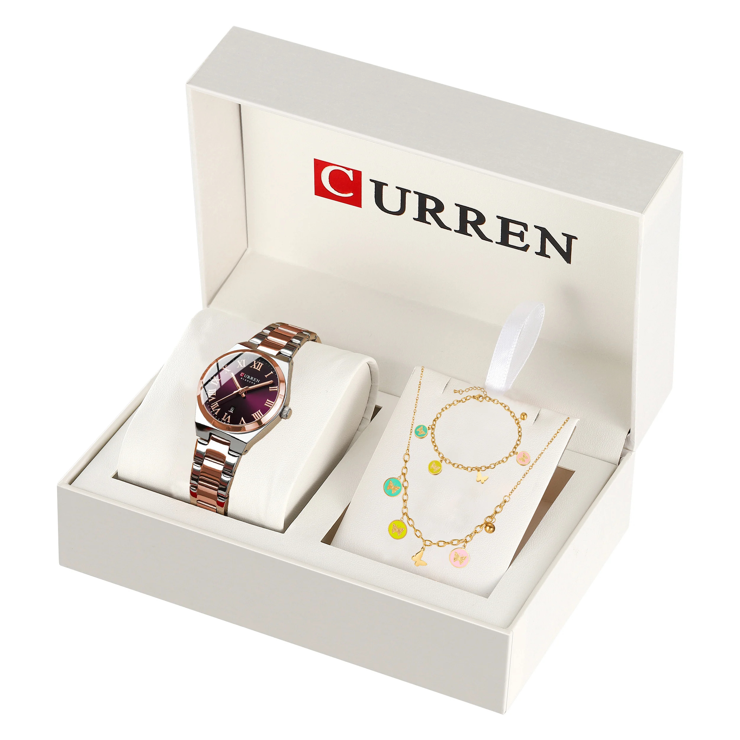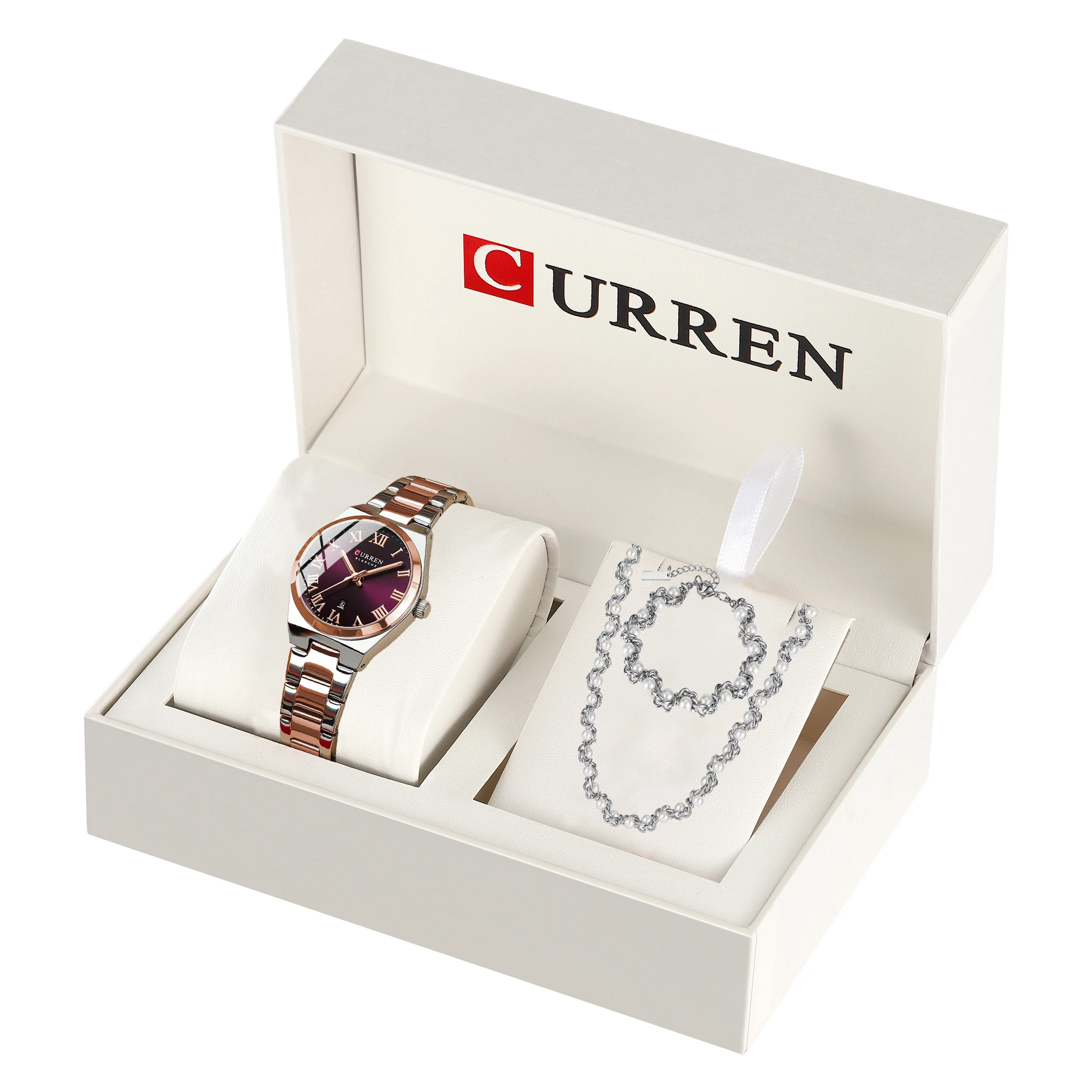 Ensemble Montre CURREN Tendance à Chaud, Coffret Cadeau Personnalisé, Parure de Bijoux pour Femme, Cadeau de Saint-Valentin 9095 9096