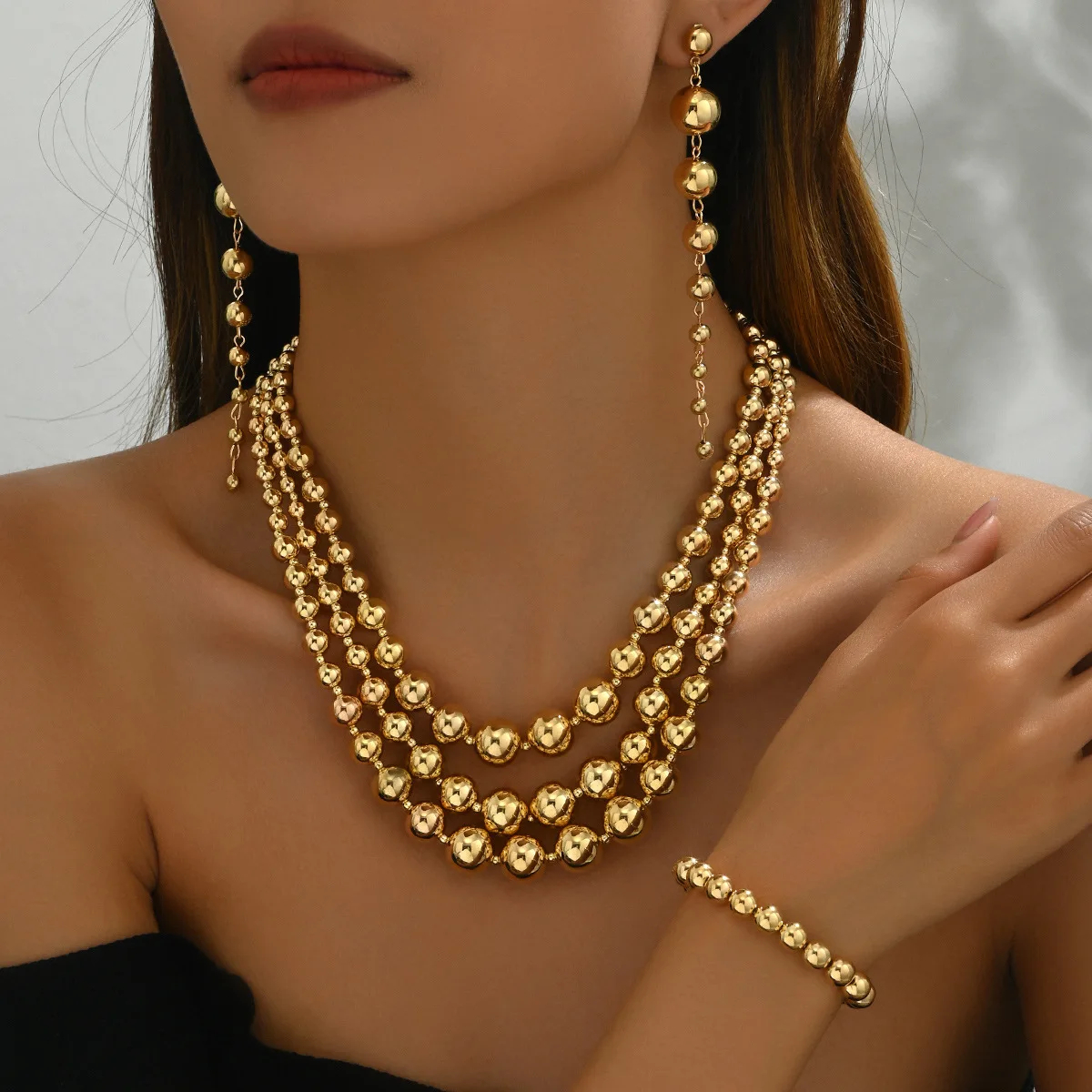 Hot Girl femmes collier Bracelet boucles d'oreilles ensemble mode perlé multicouche clavicule chaîne tout match main ensemble de bijoux pour les femmes