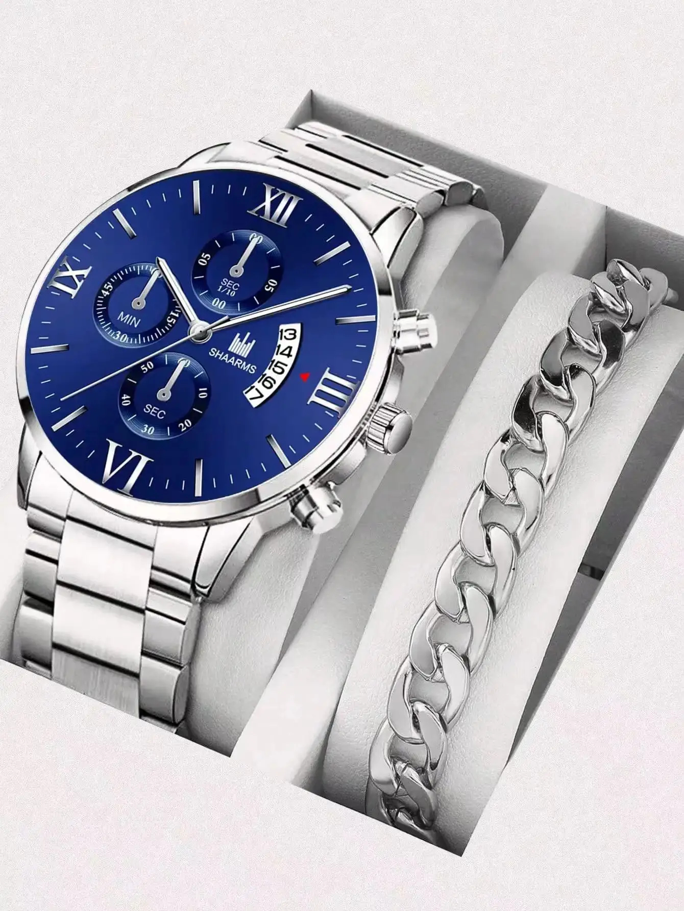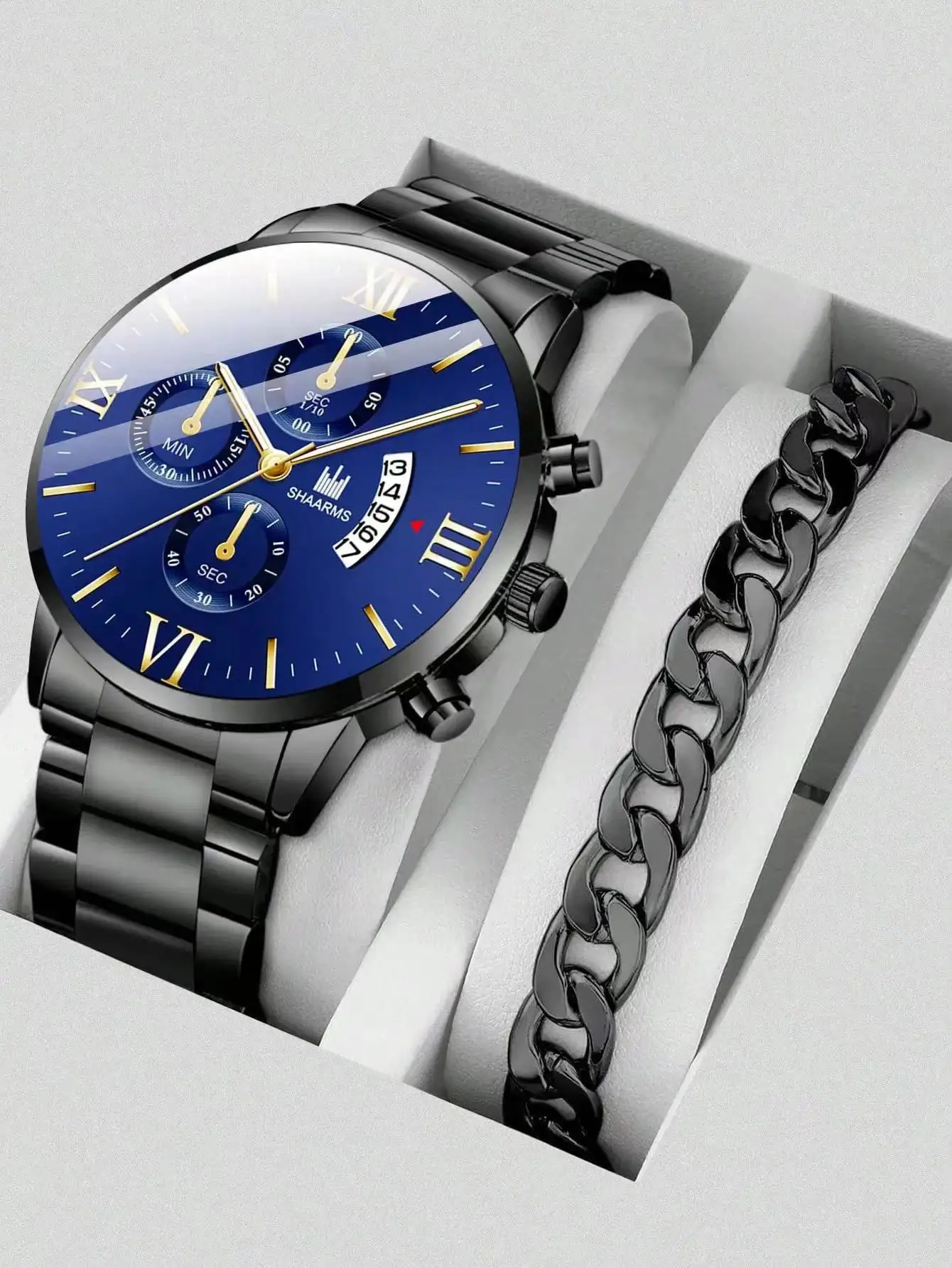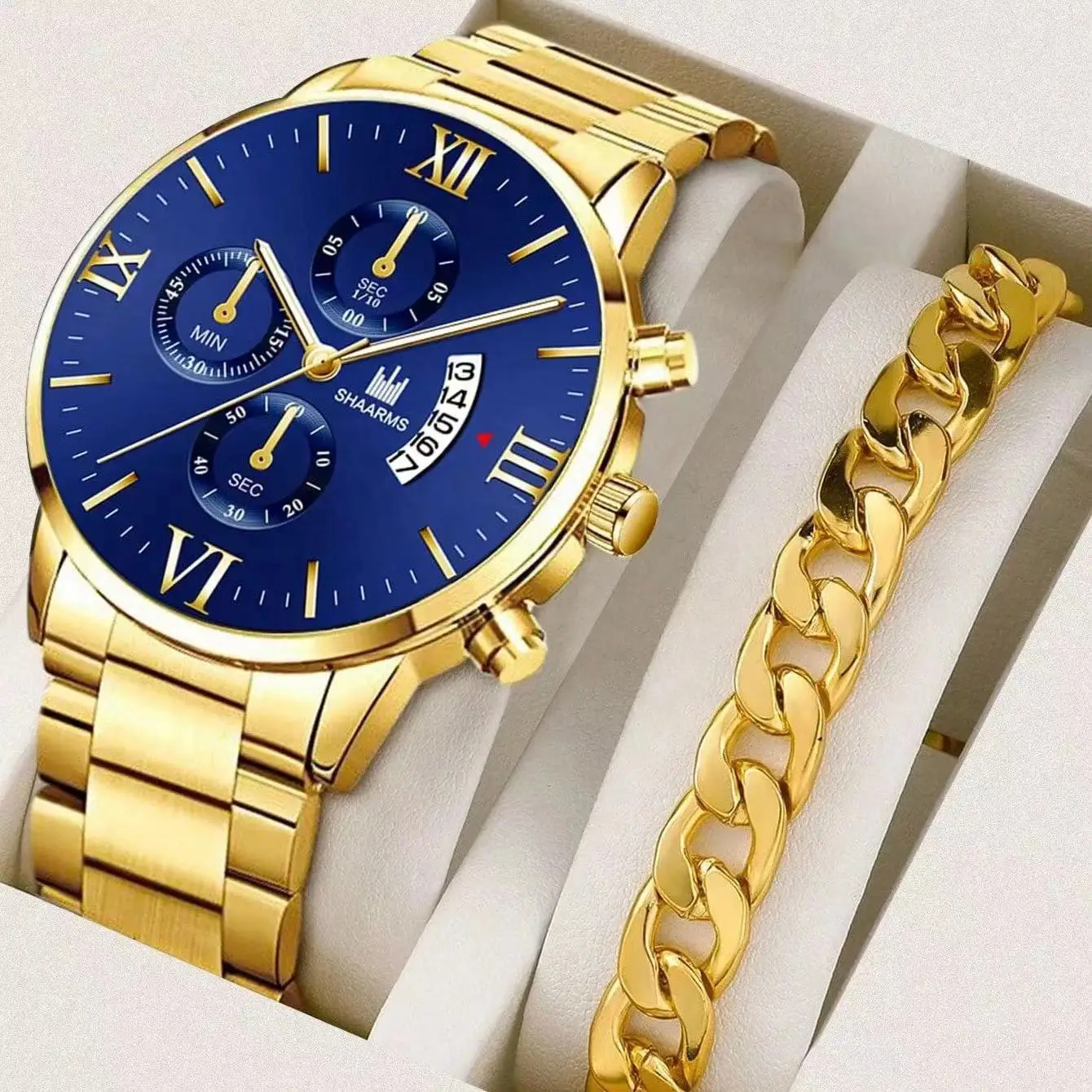Montre à Quartz Cadran Rome pour Hommes, Date Or, 2 Pièces, Montres de Luxe en Acier Inoxydable et Bracelet