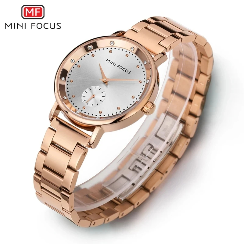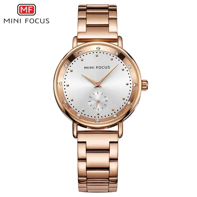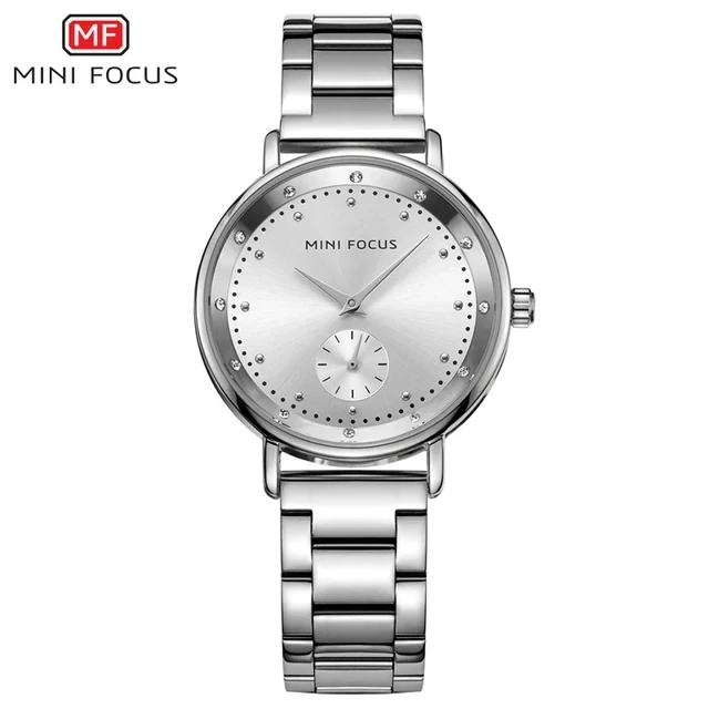Montre à quartz pour femme Mini Focus MF0037L avec diamants, design simple, bracelet en acier inoxydable, montre-bracelet tendance