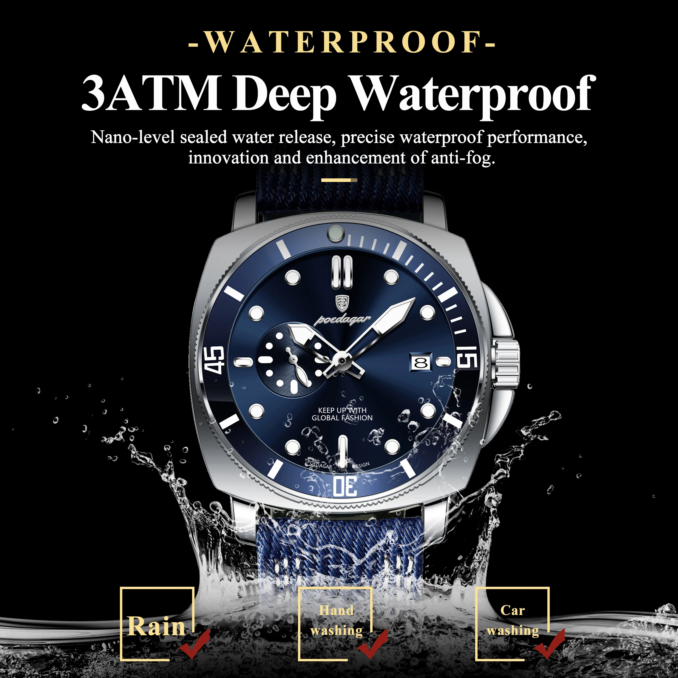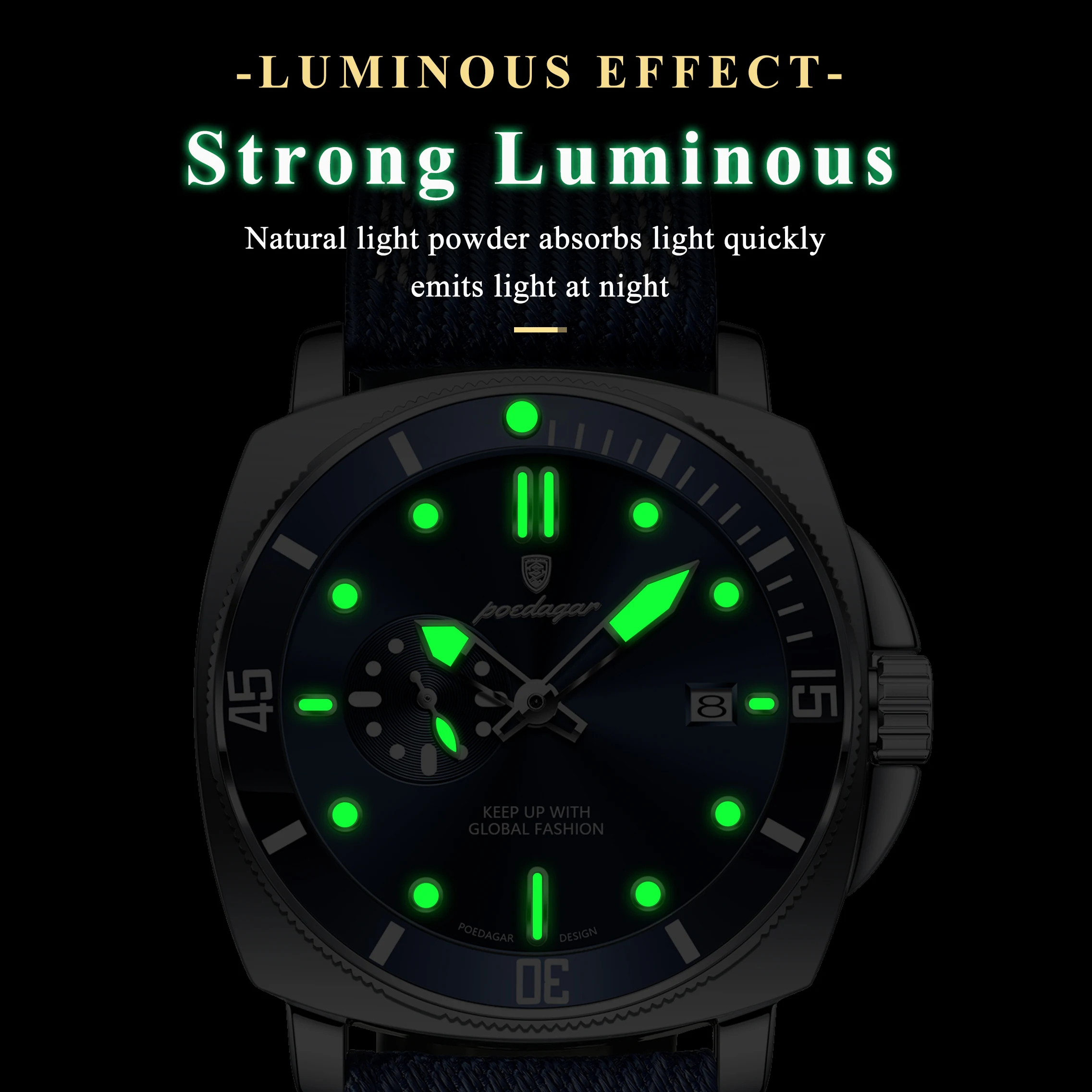 Montre-Bracelet de Luxe en Cuir Poedagar pour Homme, Vente en Gros d'Usine, Étanche et Lumineuse à Quartz
