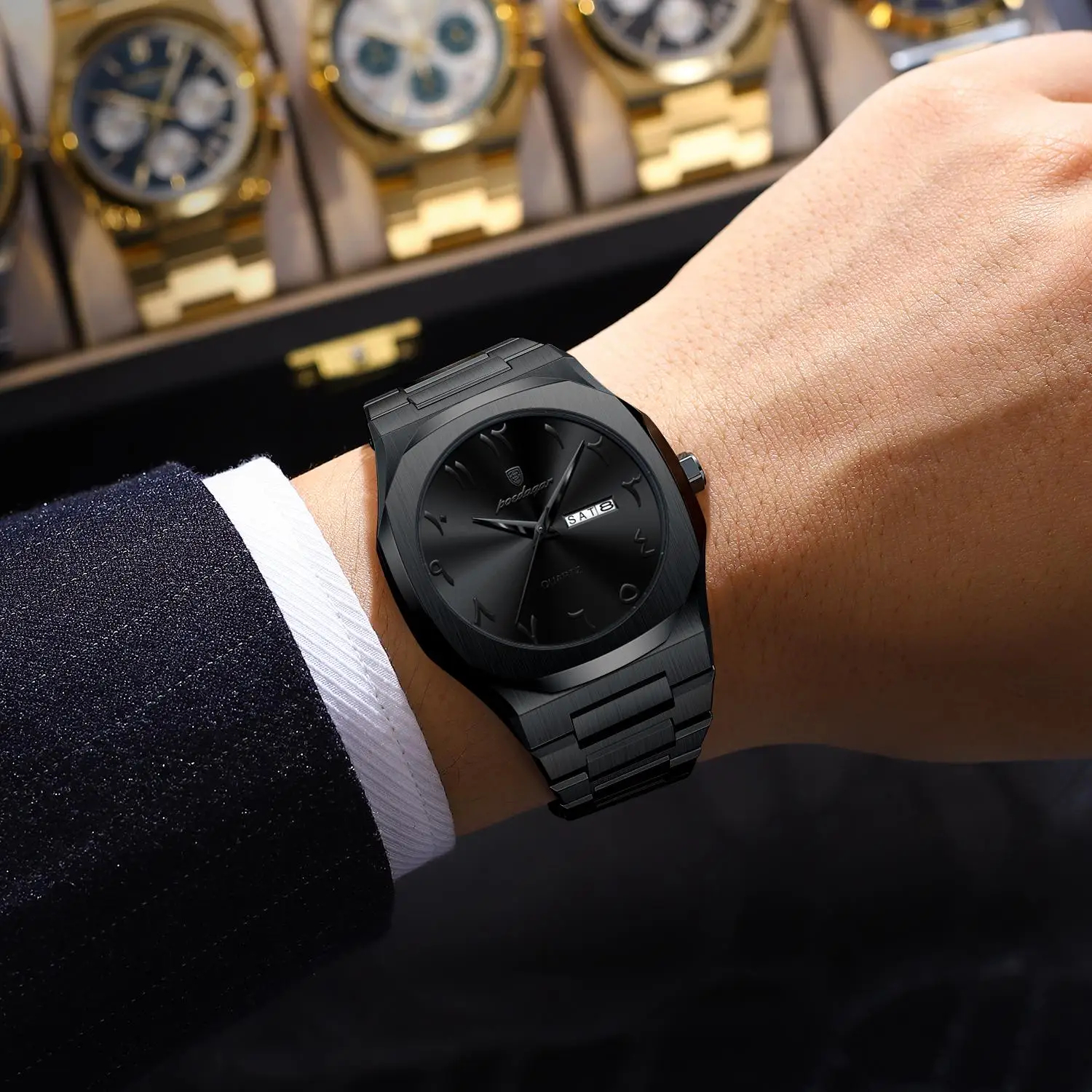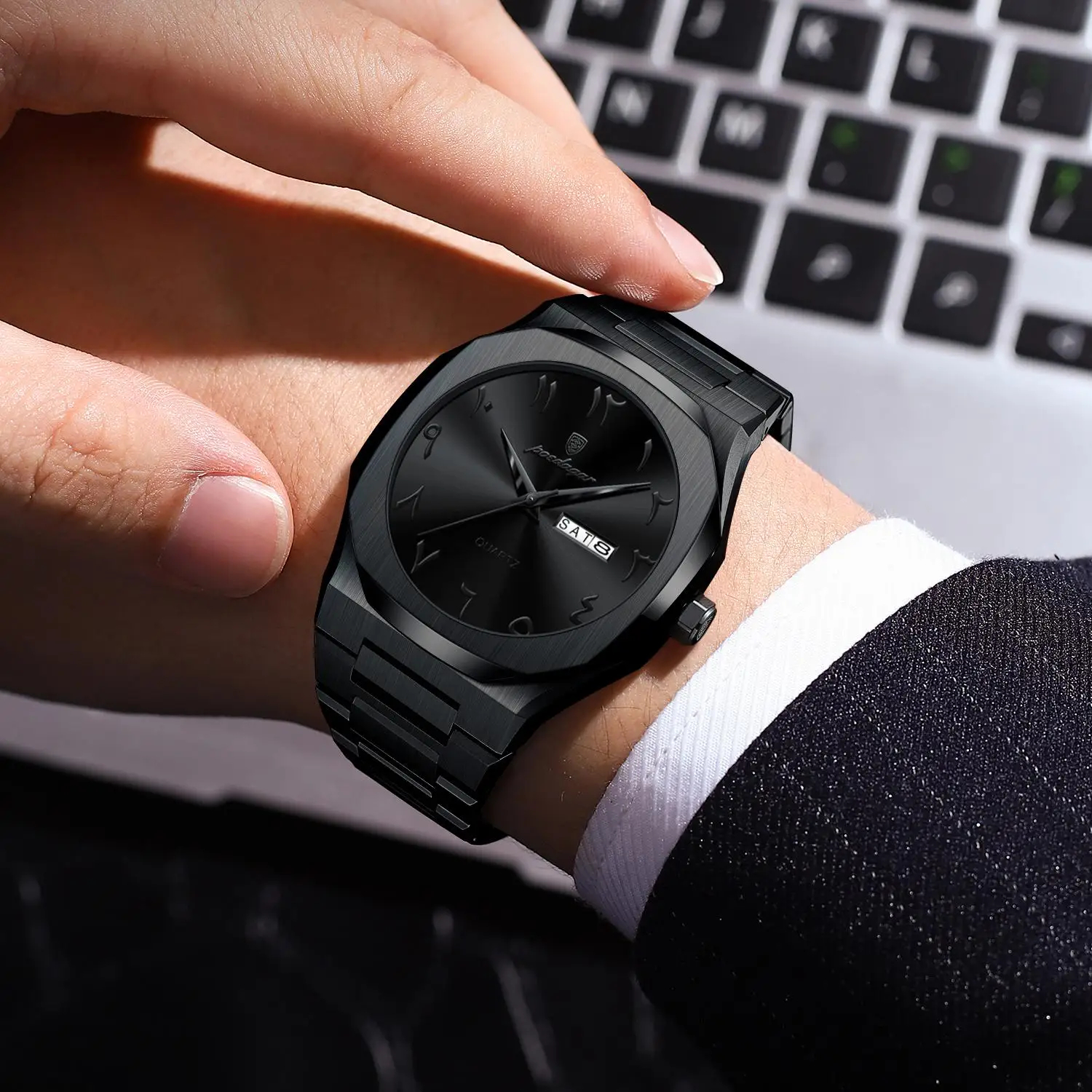 Montre Classique Poedagar pour Homme à Quartz avec Cadran Arabe du Moyen-Orient, Étanche en Acier Inoxydable