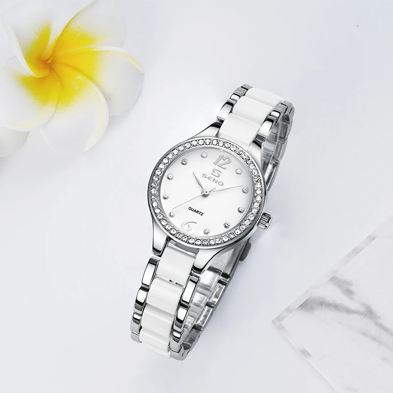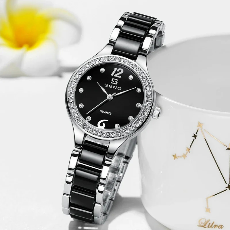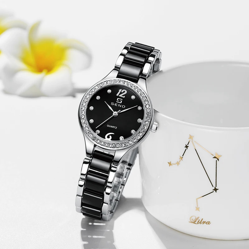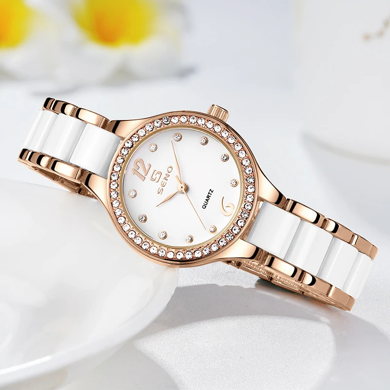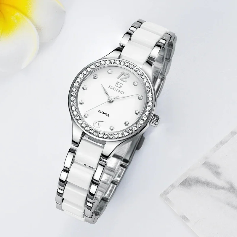 Montre pour femme SENO S034, marque bleue, montre en fer de luxe, montres serties de cristaux, montres à quartz, montres à bracelet en cristal, montres pour femmes
