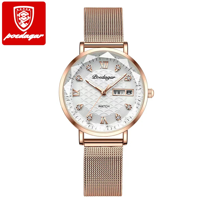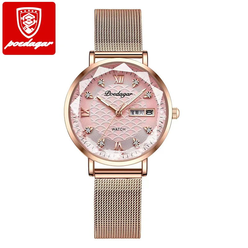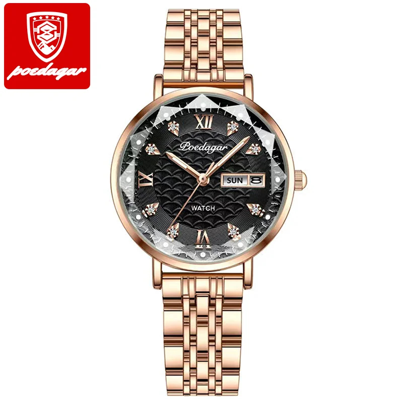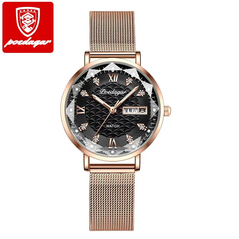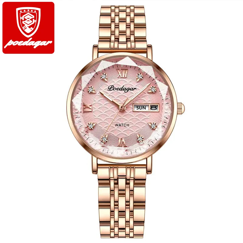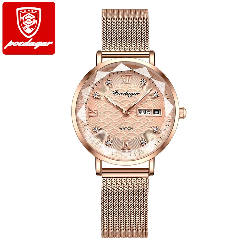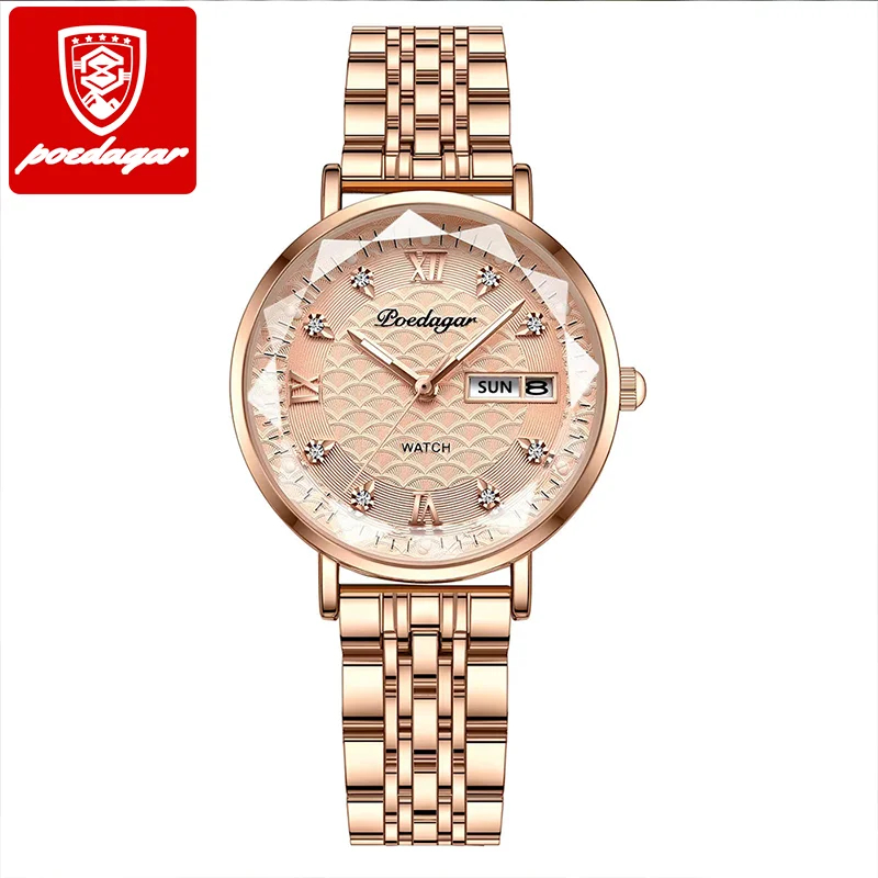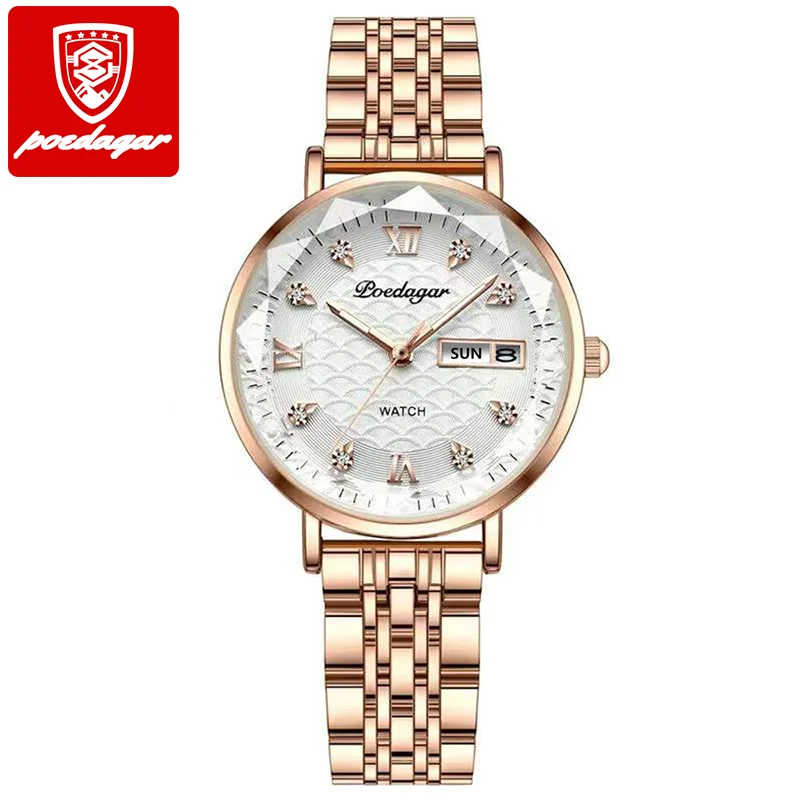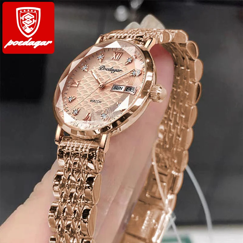 Montres pour femmes POEDAGAR, nouvelle mode, acier inoxydable, montres pour femmes, étanches, date, quartz, montre-bracelet, cadeau de luxe pour petite amie