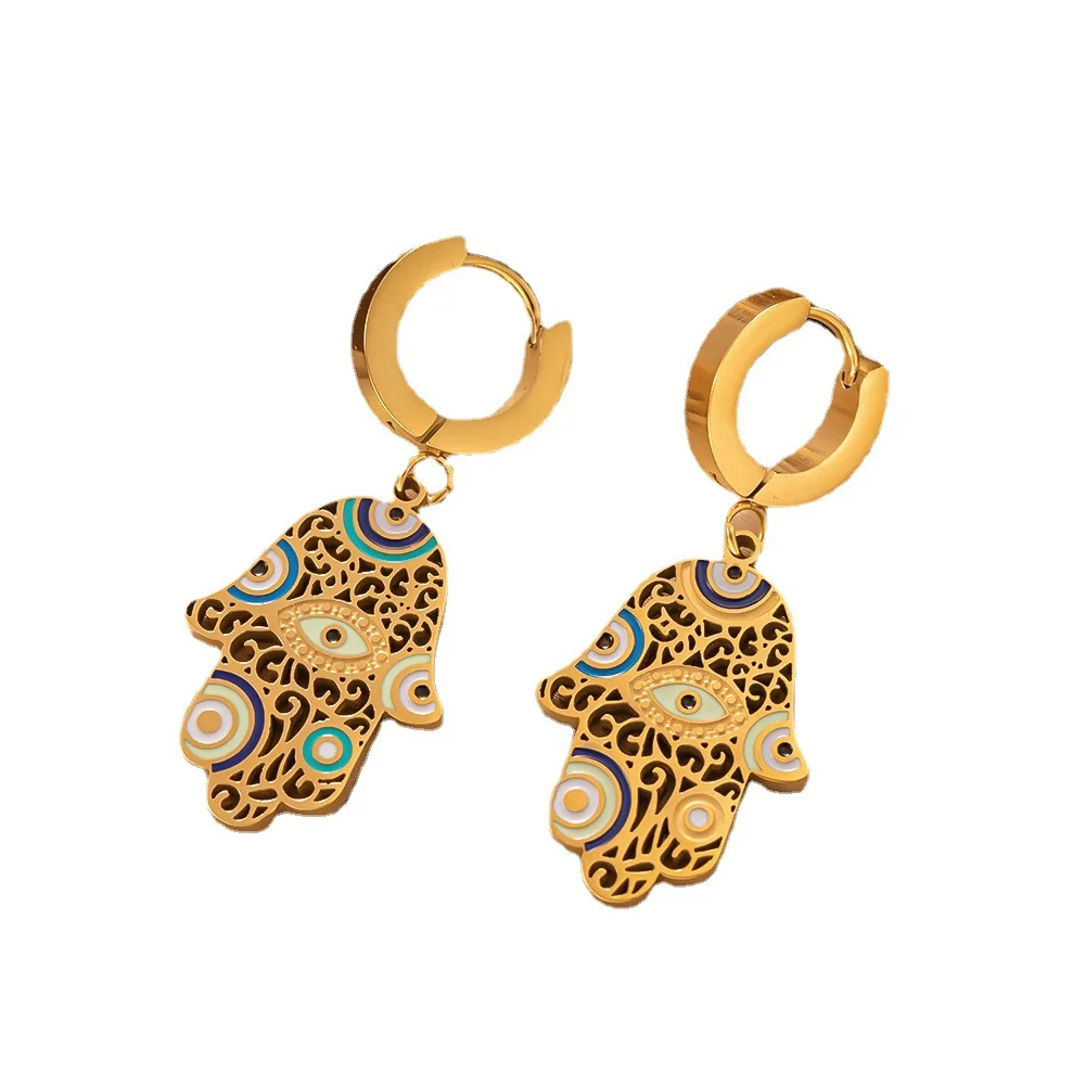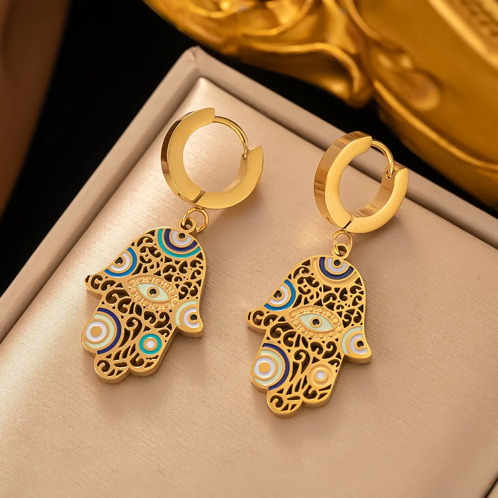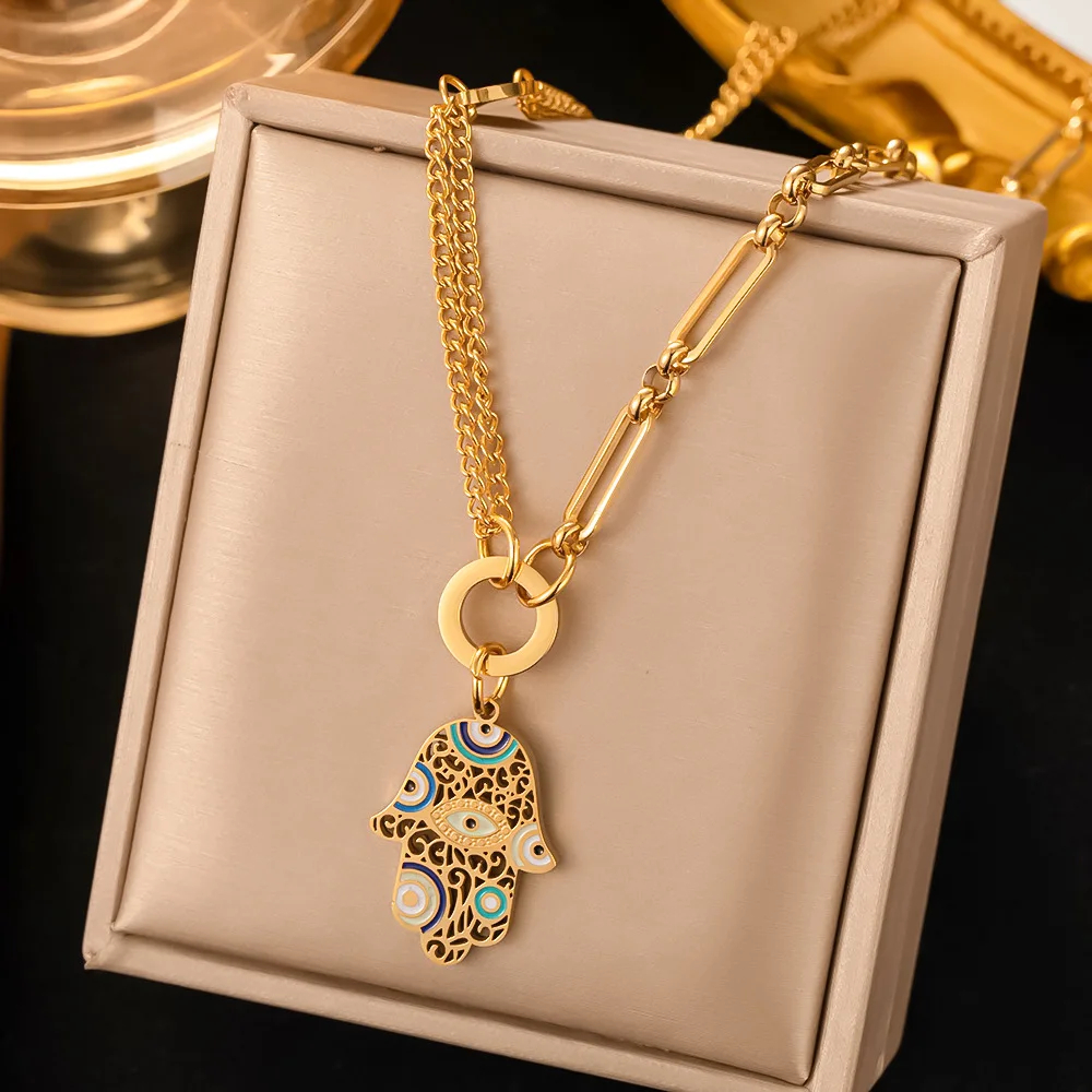 Nabest acier inoxydable femmes émail main de Fatima collier Bracelet boucles d'oreilles étanche plaqué or guérison ensemble de bijoux