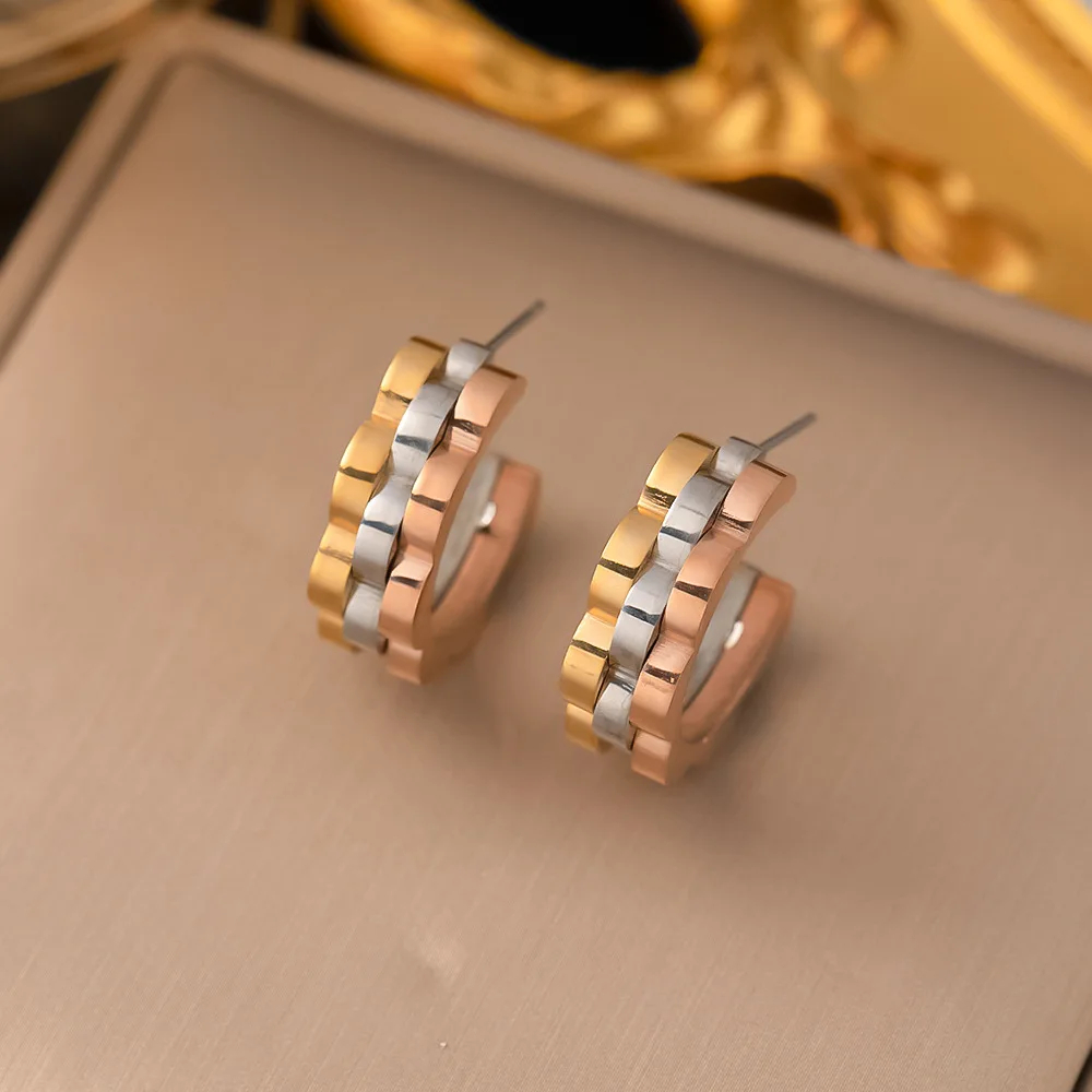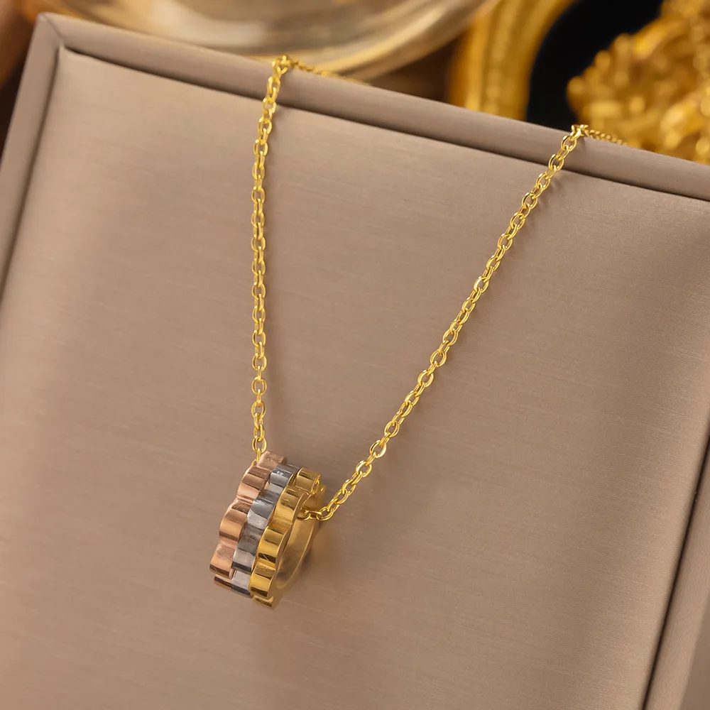 Nabest Acier Inoxydable Femmes Géométrique Vague Pendentif Collier Cc Boucle D'oreille Ensemble de Bijoux Étanche 18K Plaqué Or Bijoux