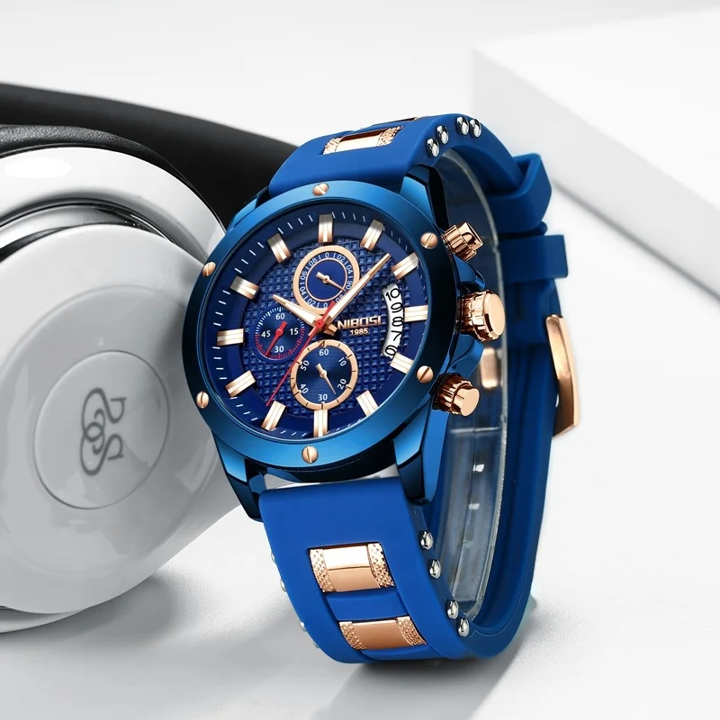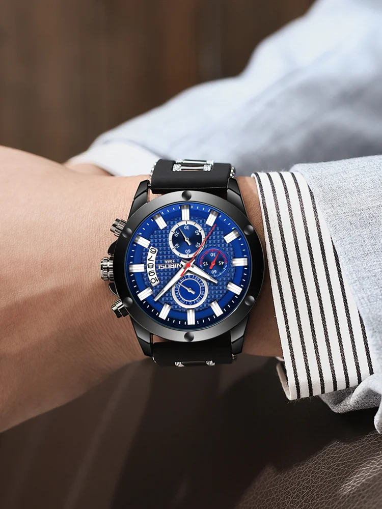 NIBOSI – montre à Quartz analogique chronographe pour hommes, montre de Date, montre de luxe en Silicone de marque supérieure, 2333