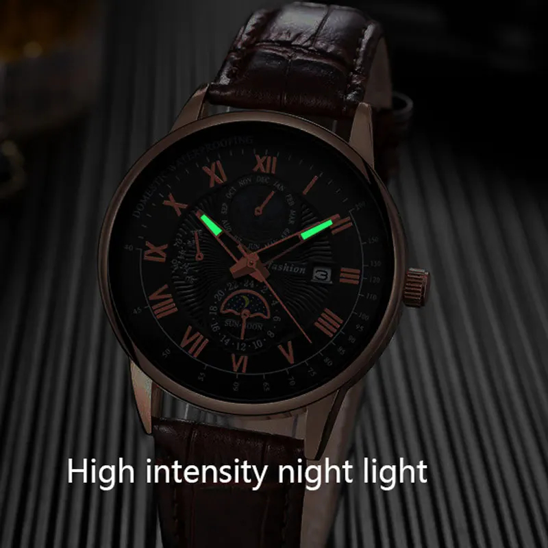 Nouvelle Montre de Mode pour Hommes en Cuir à Quartz, Montre-bracelet Étanche Lumineuse Sportive de Luxe avec Date pour Homme