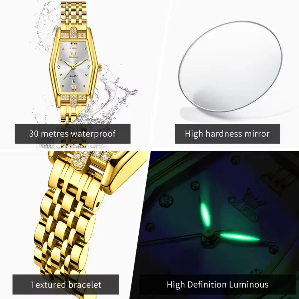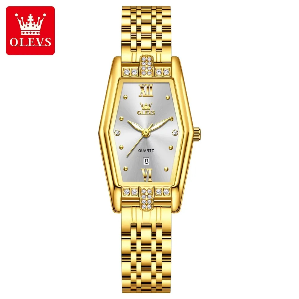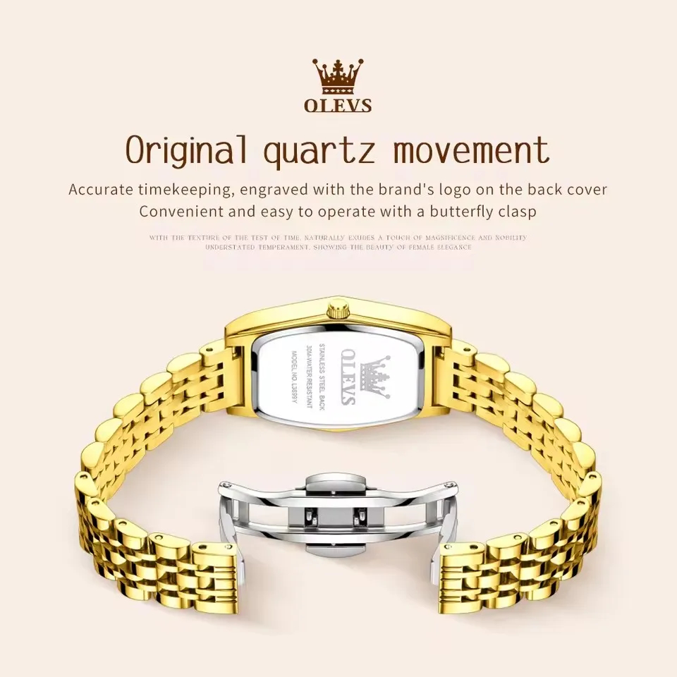 OLEVS 3699 Montre à quartz élégante de luxe à la mode Petite montre en or Montre-bracelet originale en acier inoxydable étanche pour femmes