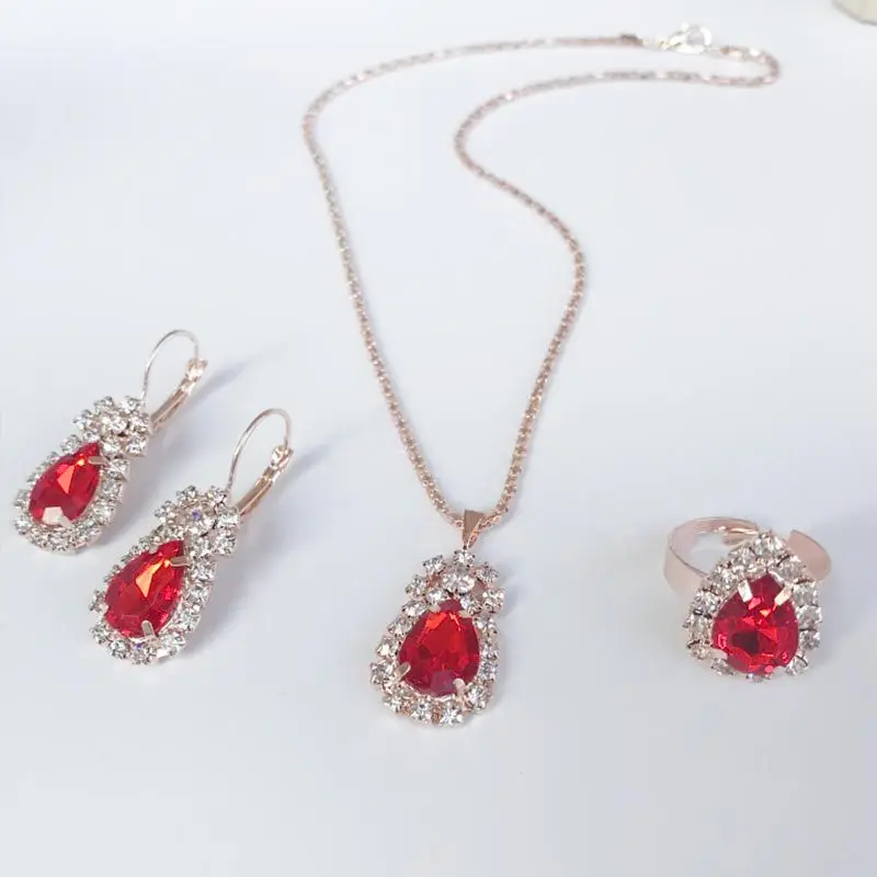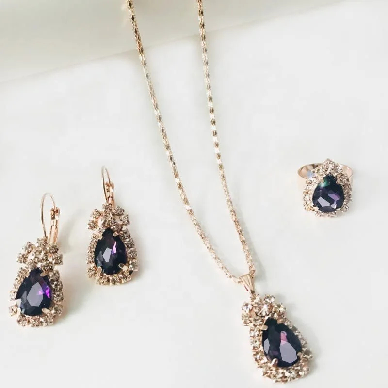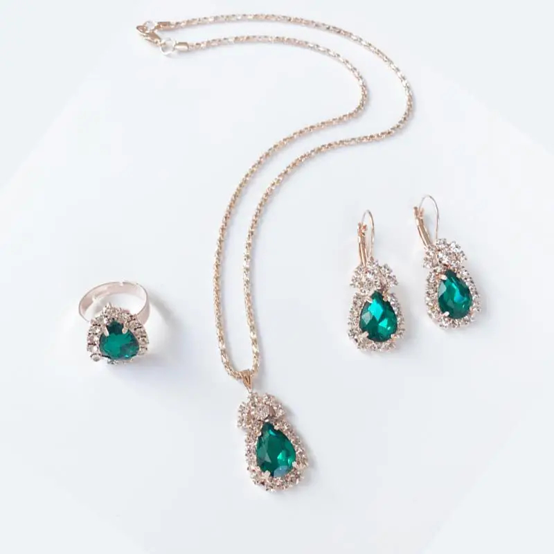 Parures de bijoux en zircone cubique pour femmes, parures de mariage, parures de mariée avec collier, boucles d'oreilles, bagues