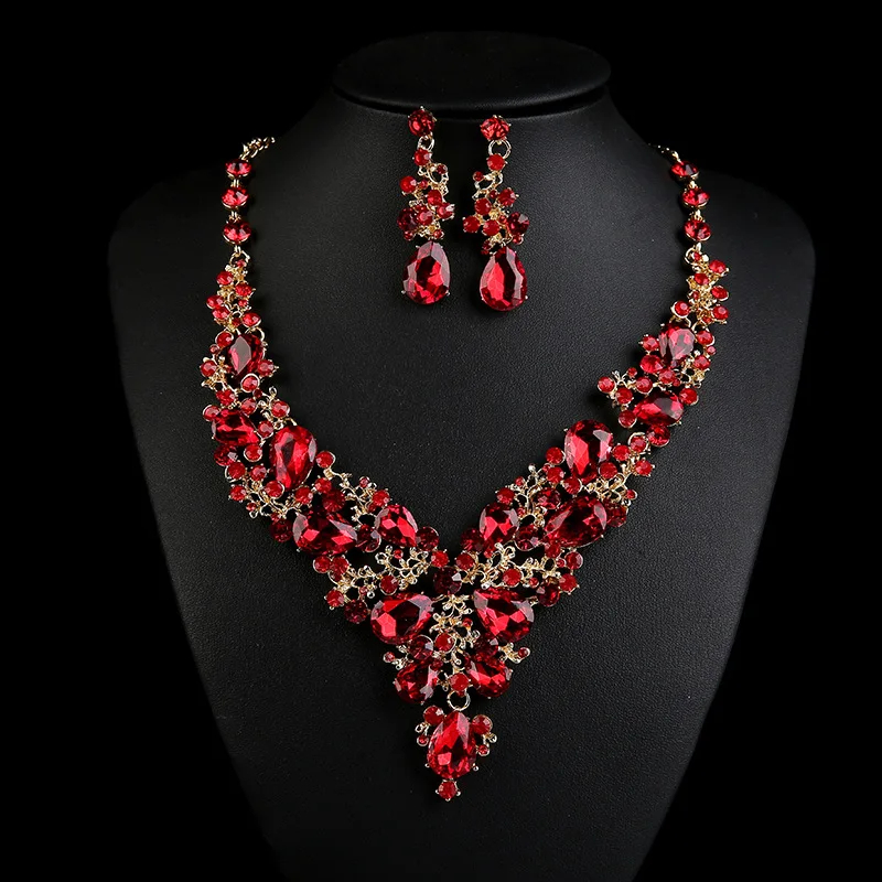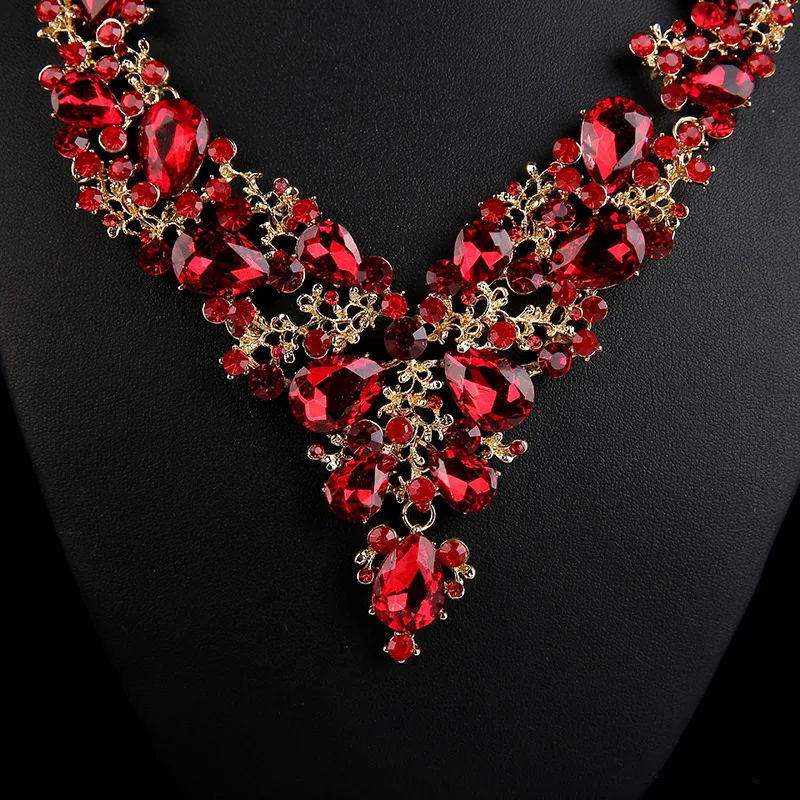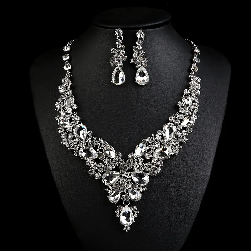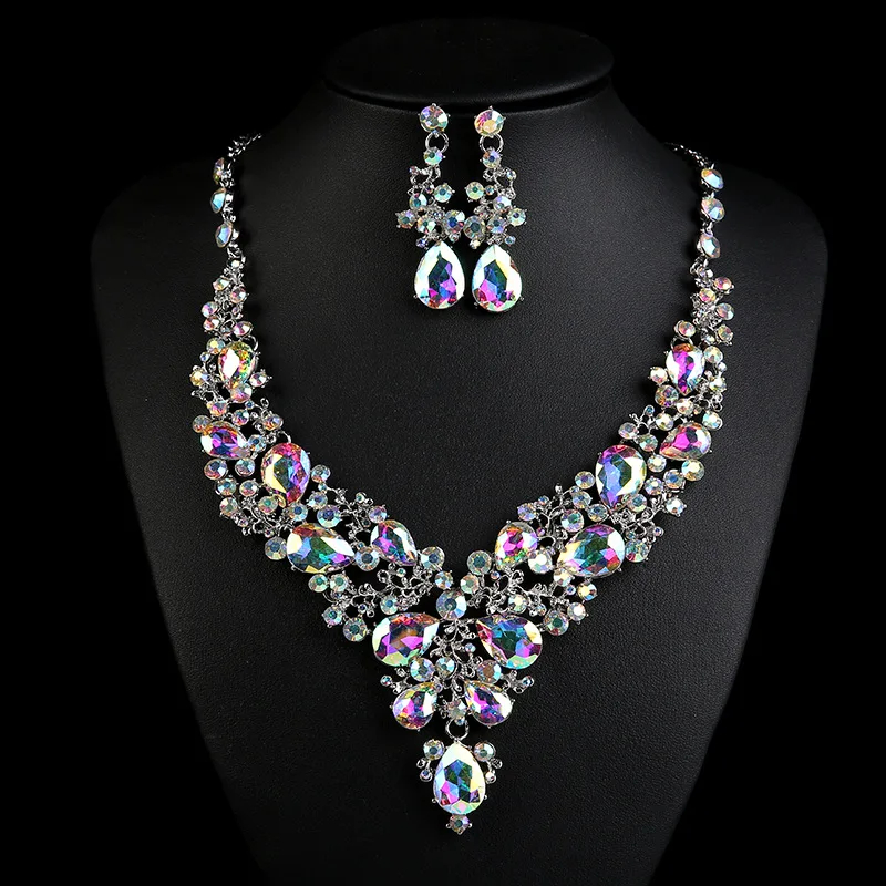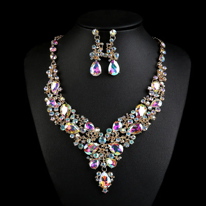 Prix usine en gros cadeau de mariage vintage strass collier mode collier ras du cou ensemble de bijoux