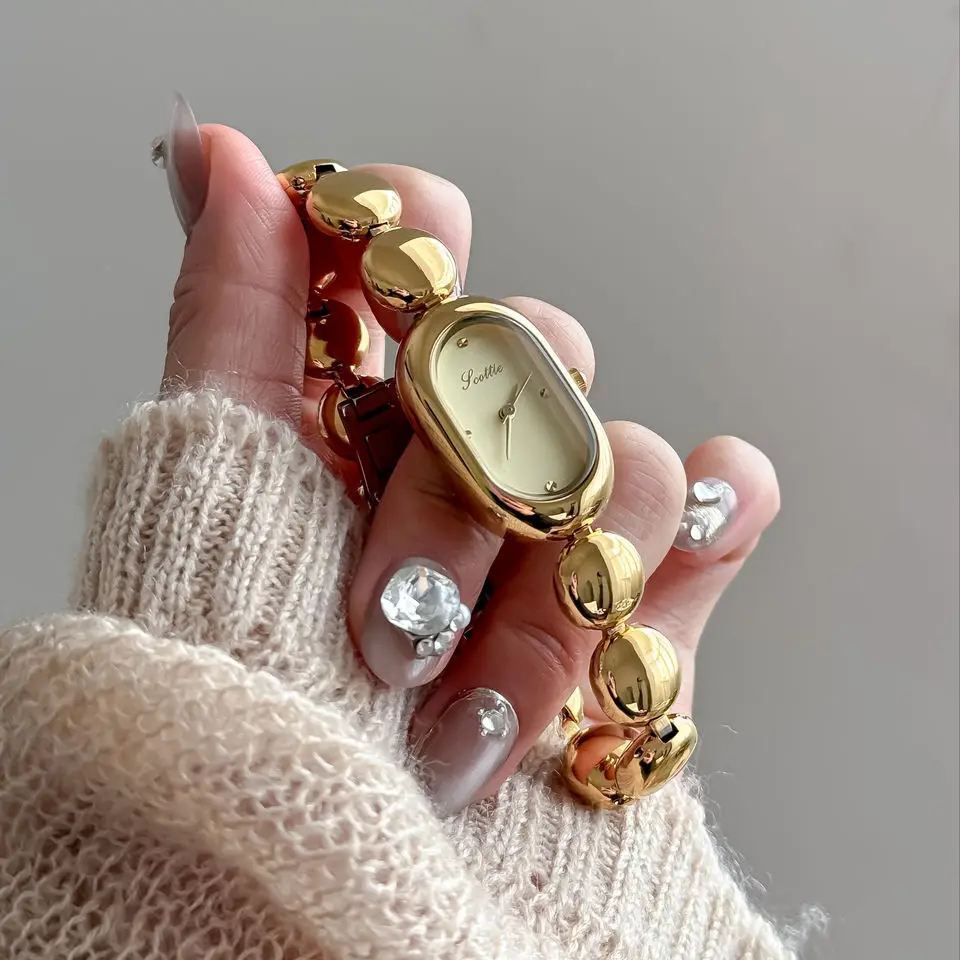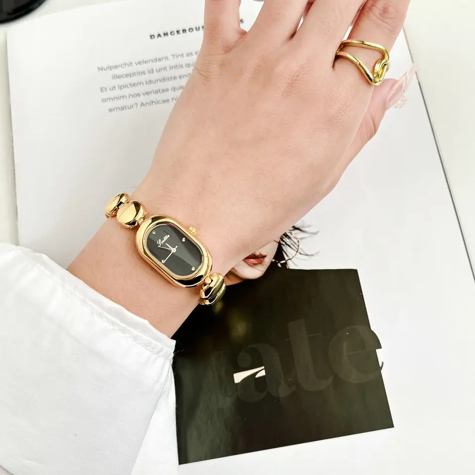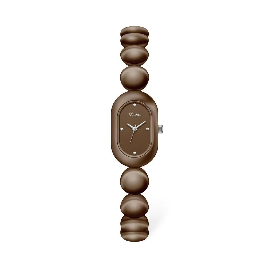 Scottie 9731B Montre à quartz de luxe pour femme, design simple et ovale, bracelet en acier inoxydable, montres d'affaires en verre à la mode pour femme