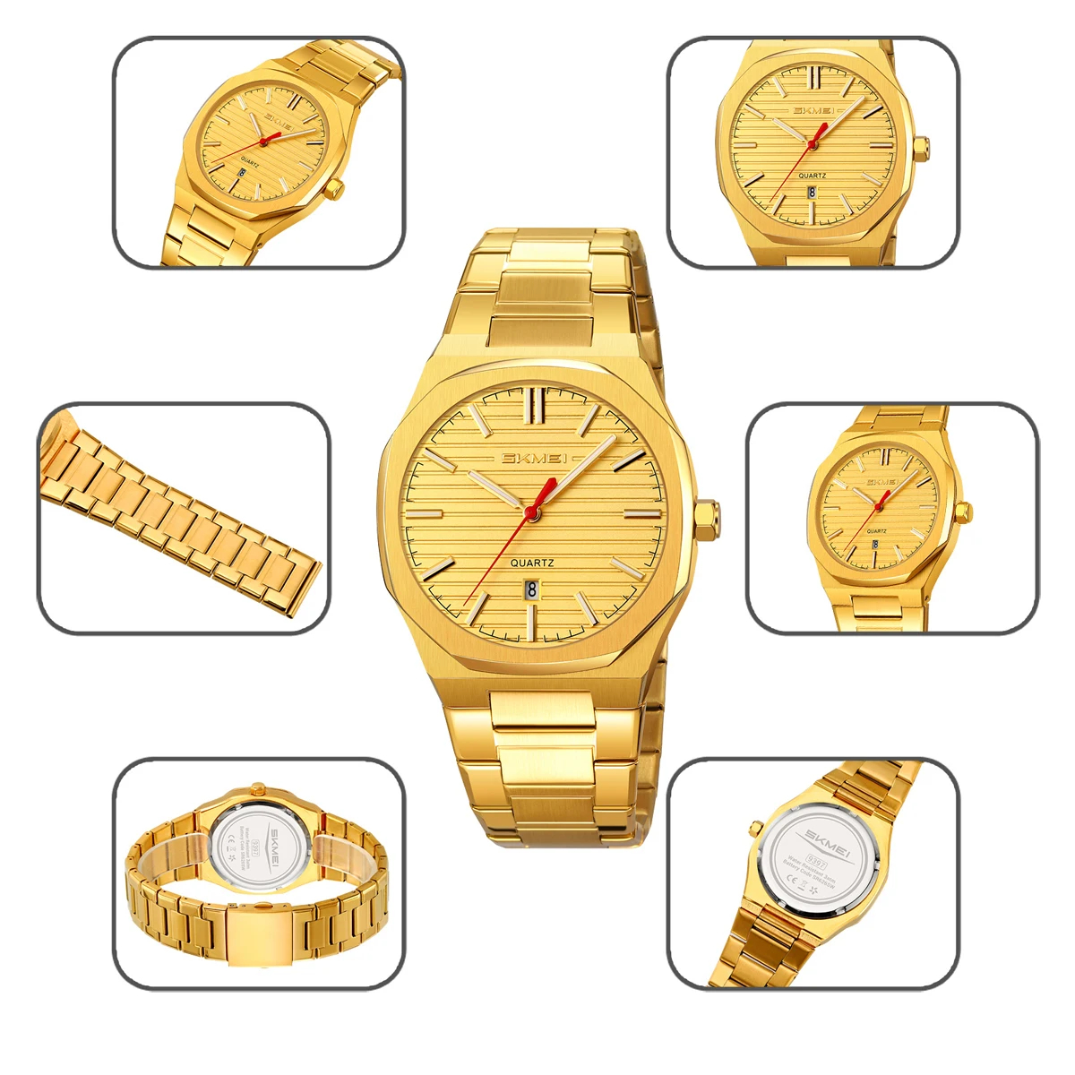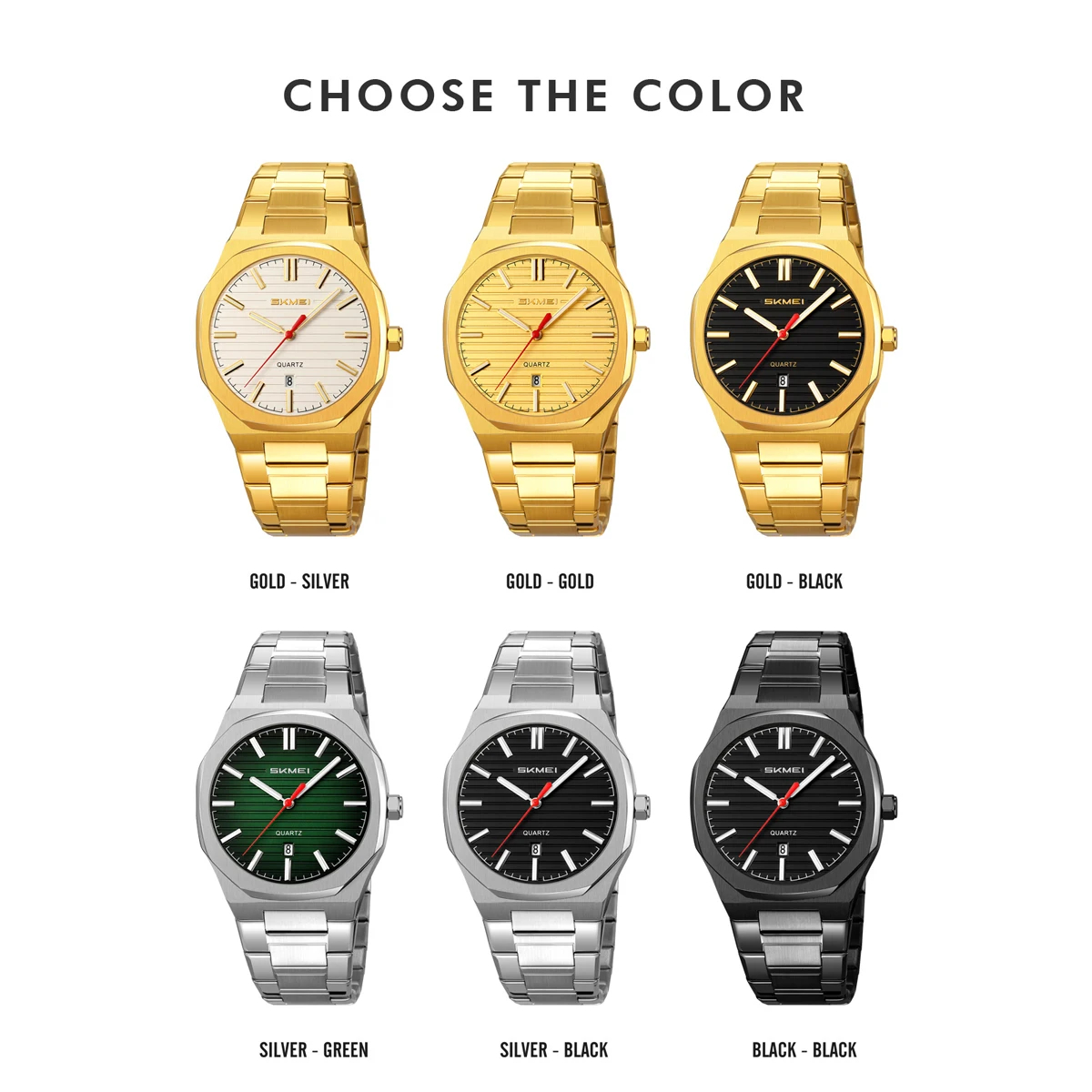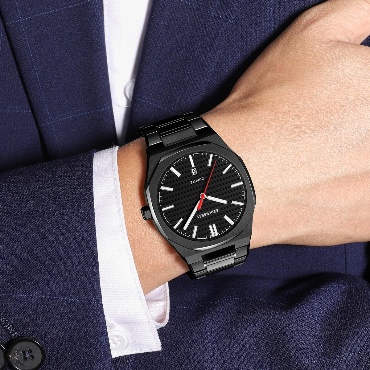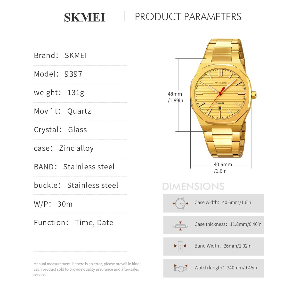 SKMEI 9397 montre-bracelet en acier inoxydable pour hommes avec affichage de la date 3ATM étanche Quartz mode Style d'affaires OEM Logo personnalisé