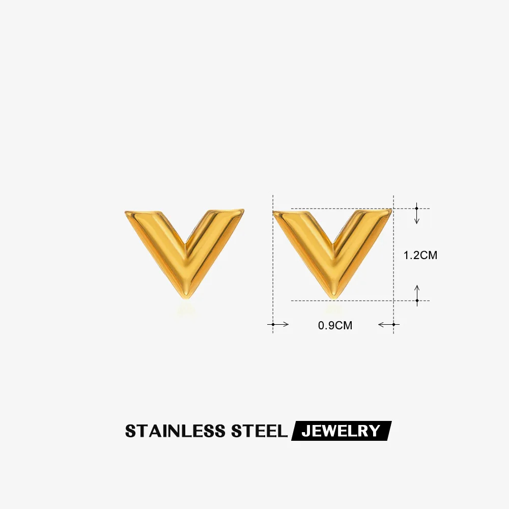 Vente en gros Parure de bijoux élégants en acier inoxydable Tendance Plaqué or 18 carats Lettre V Chaîne fine Boucle d'oreille Bracelet Collier pour femmes